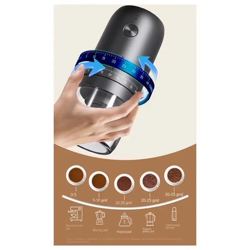 【Portable and Cordless】It’s built in low-noise pure copper motor, uniform rotating speed, high grinding force. Equipped with 1800mAh large-capacity lithium battery, endurance capacity 125% increase, it can play 30 cups in a row when fully charged. You can enjoy freshly ground coffee anytime and anywhere.