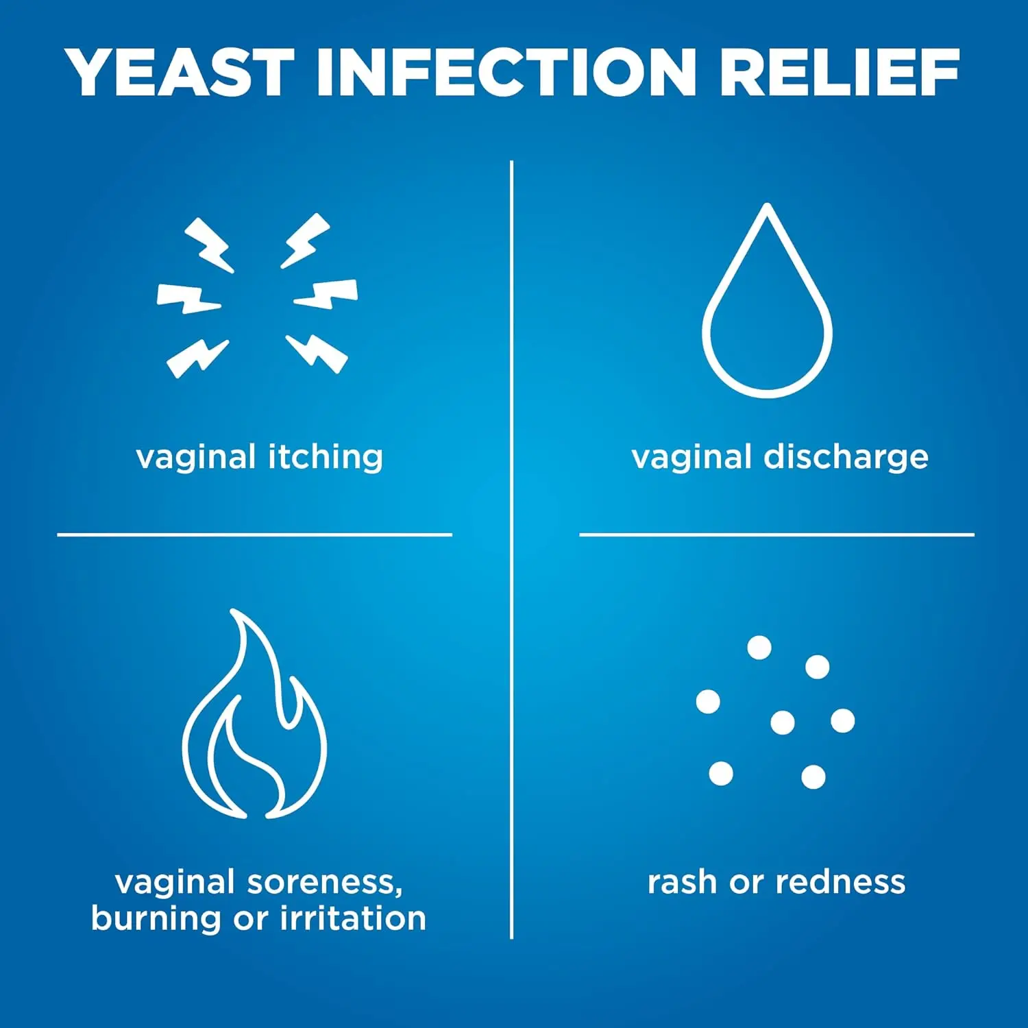 EXTERNAL VULVAR ITCH CREAM: This combo pack also includes an external cream to relieve external vulvar itching and irritation due to a vaginal yeast infection. Contains miconazole nitrate 2 percent, a vaginal antifungal
