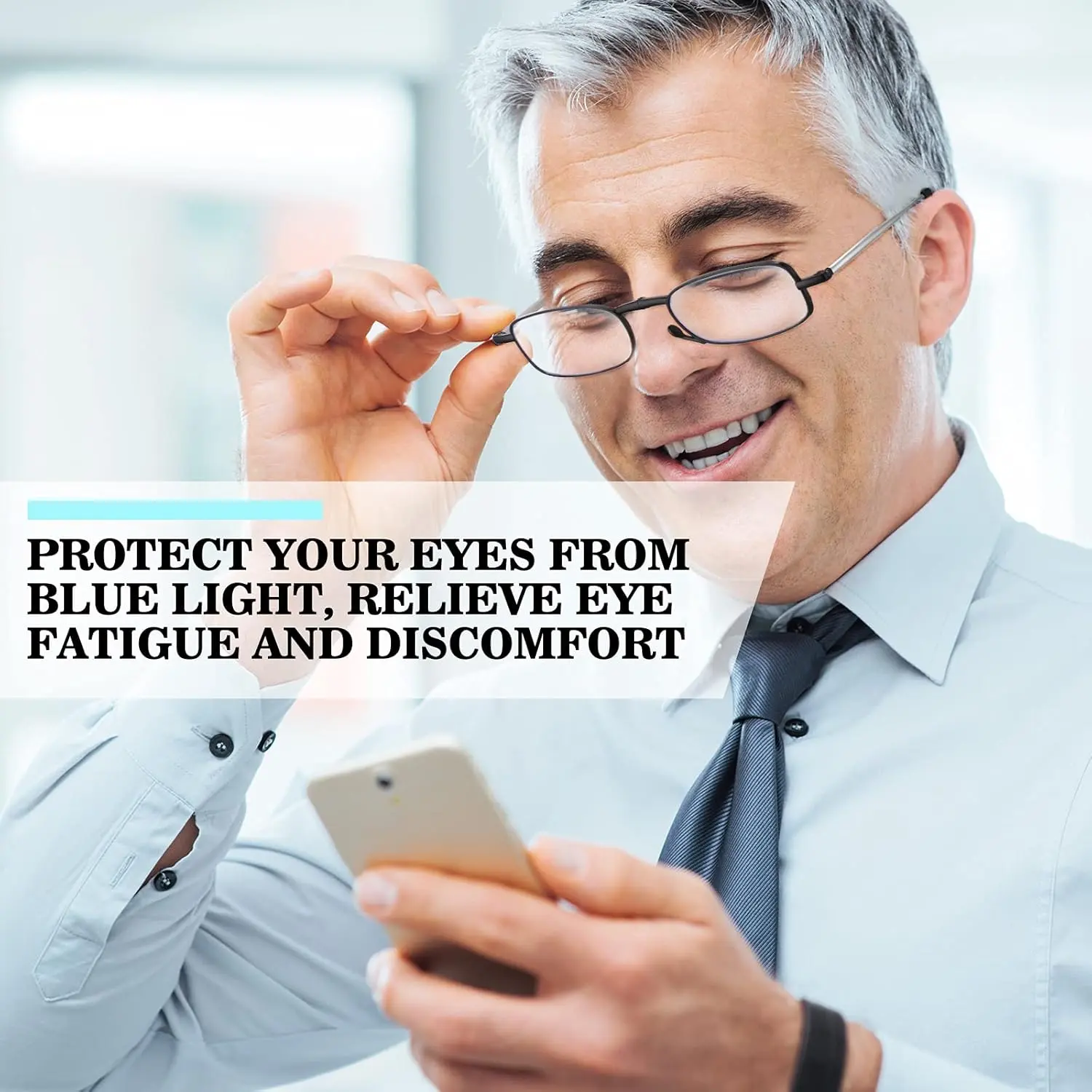 ·Anti blue light lens: the folding reading glasses with the magnification strength of 2.5x can effectively block the blue light from electronics, helping to relieve eye fatigue and discomfort when you are watching TV, computer, mobile phone and working under fluorescent lights