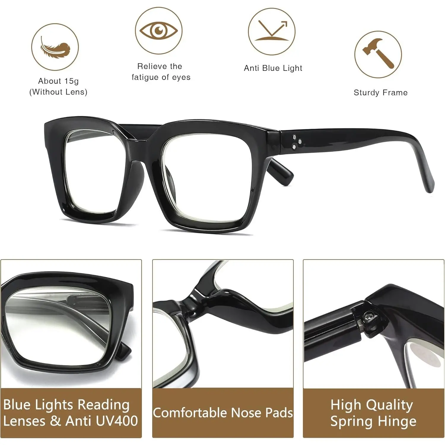 ·[Anti Blue Light Readers]Blue Light Blocking Glasses can effectively block harmful blue light coming from phones, computer monitors, gaming, and other devices.Reduce eyestrain, enjoy your digital timeand sleep better.