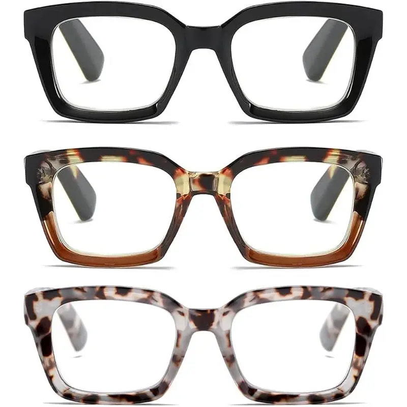 for Women Oprah Style Square Reading Glasses with Spring Hinge Blue Light Blocking for Men Ladies