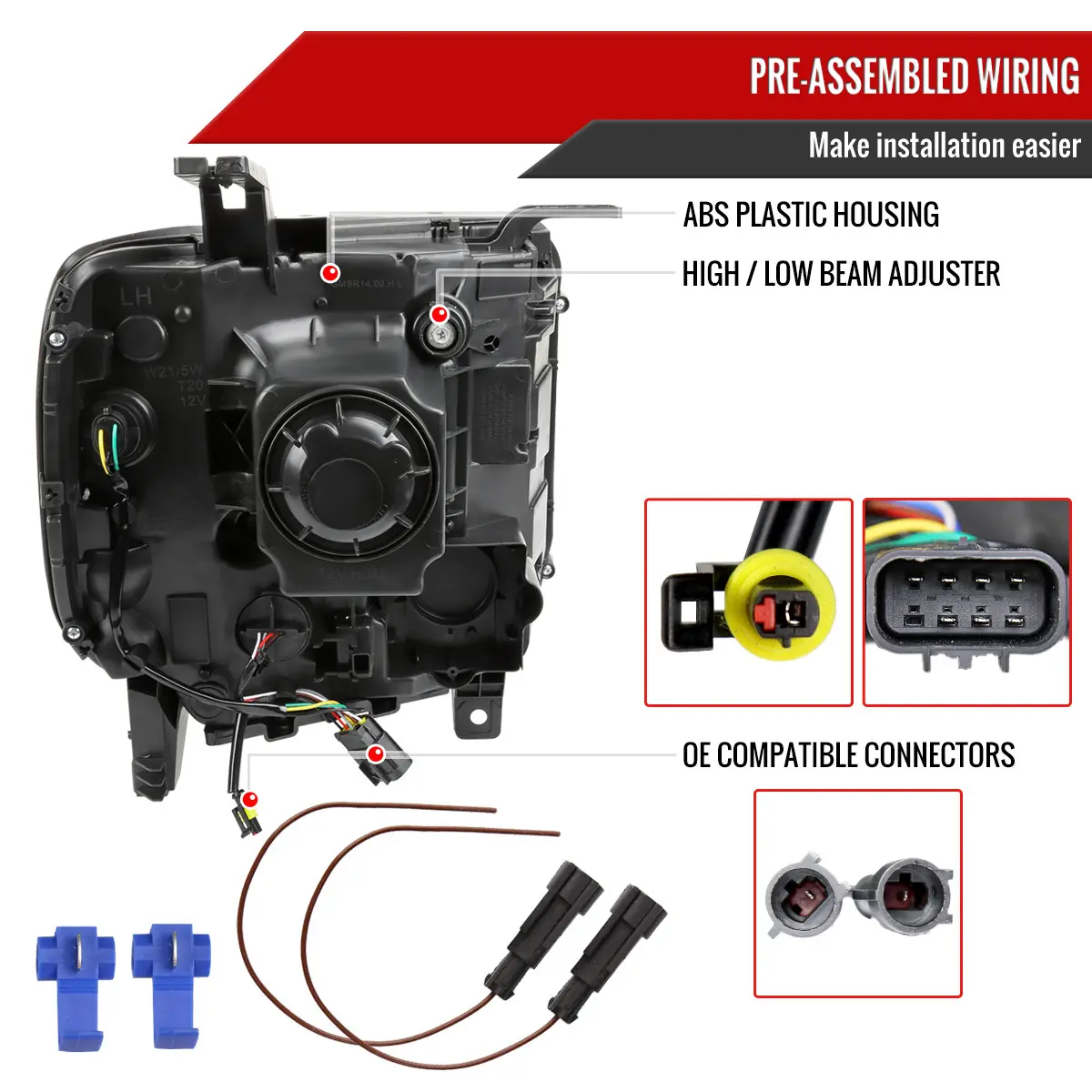 2014-2019 GMC Sierra LED Light Strip Projector Headlights (Chrome Housing/Clear Lens)