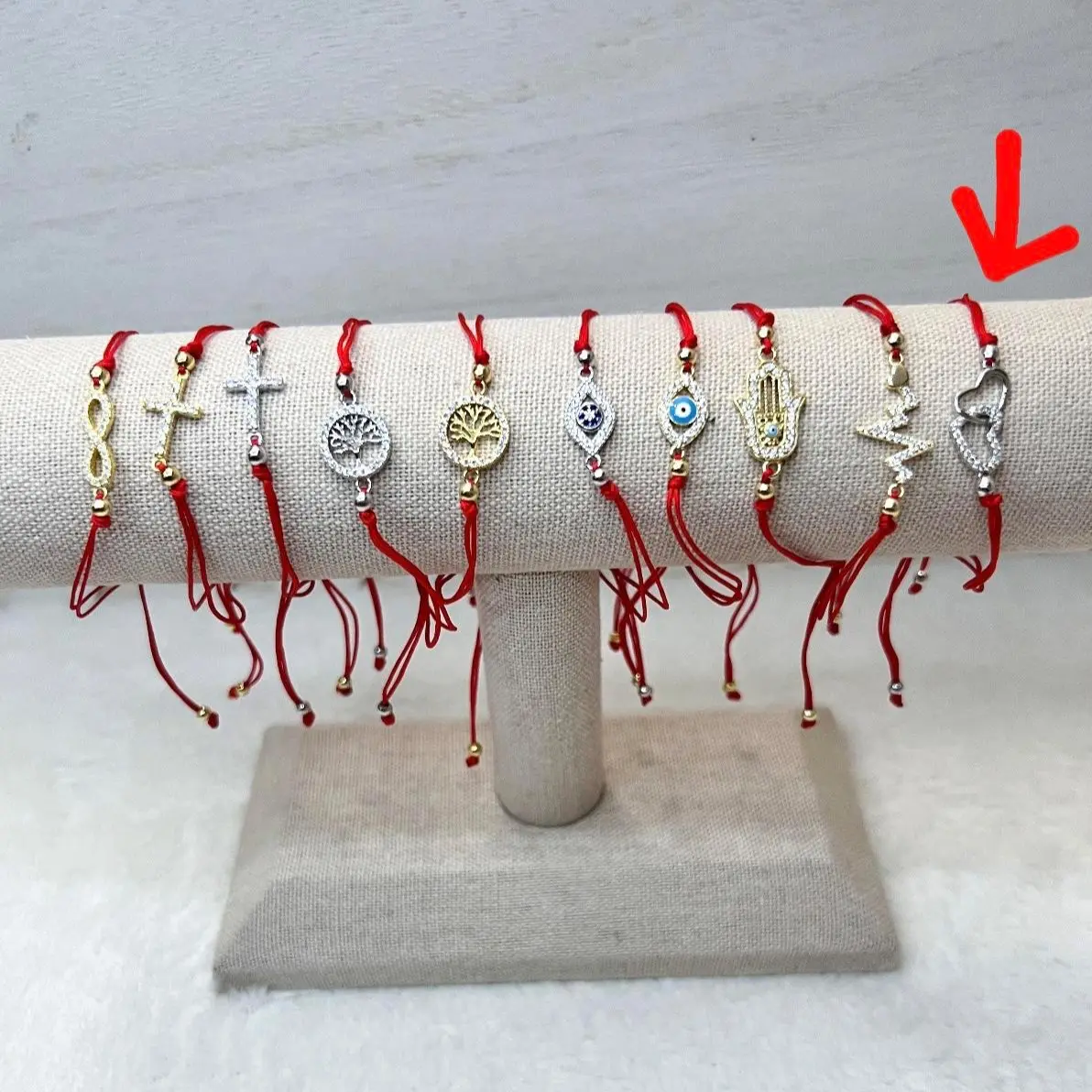 Red string hearts bracelet