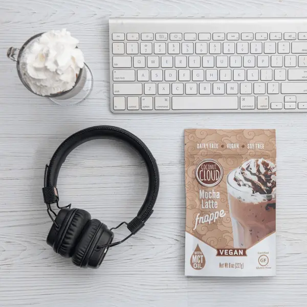 Coconut Cream Powder (Coconut Cream, Tapioca Syrup, less than 2% Dipotassium Phosphate, Vegtable Fiber), Organic Cane Sugar, Cocoa, Coffee, Acacia Fiber, MCT Oil Powder (MCT Oil, Acacia Fiber) and Sea Salt