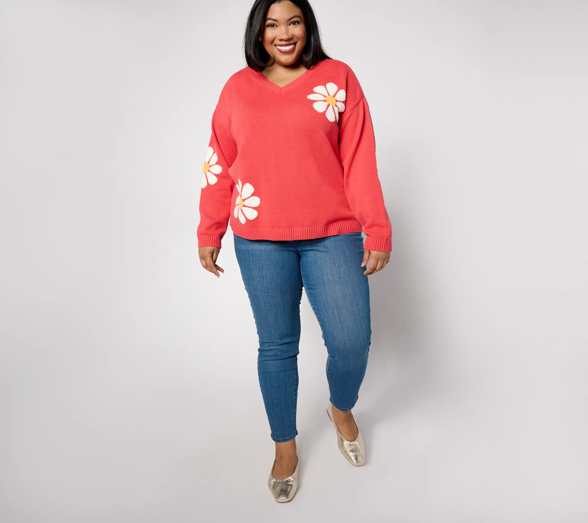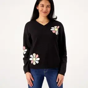 Look and feel as fresh as a daisy! This cheery floral sweater is sure to invoke lots of smiles (and compliments!). From Peace Love World.