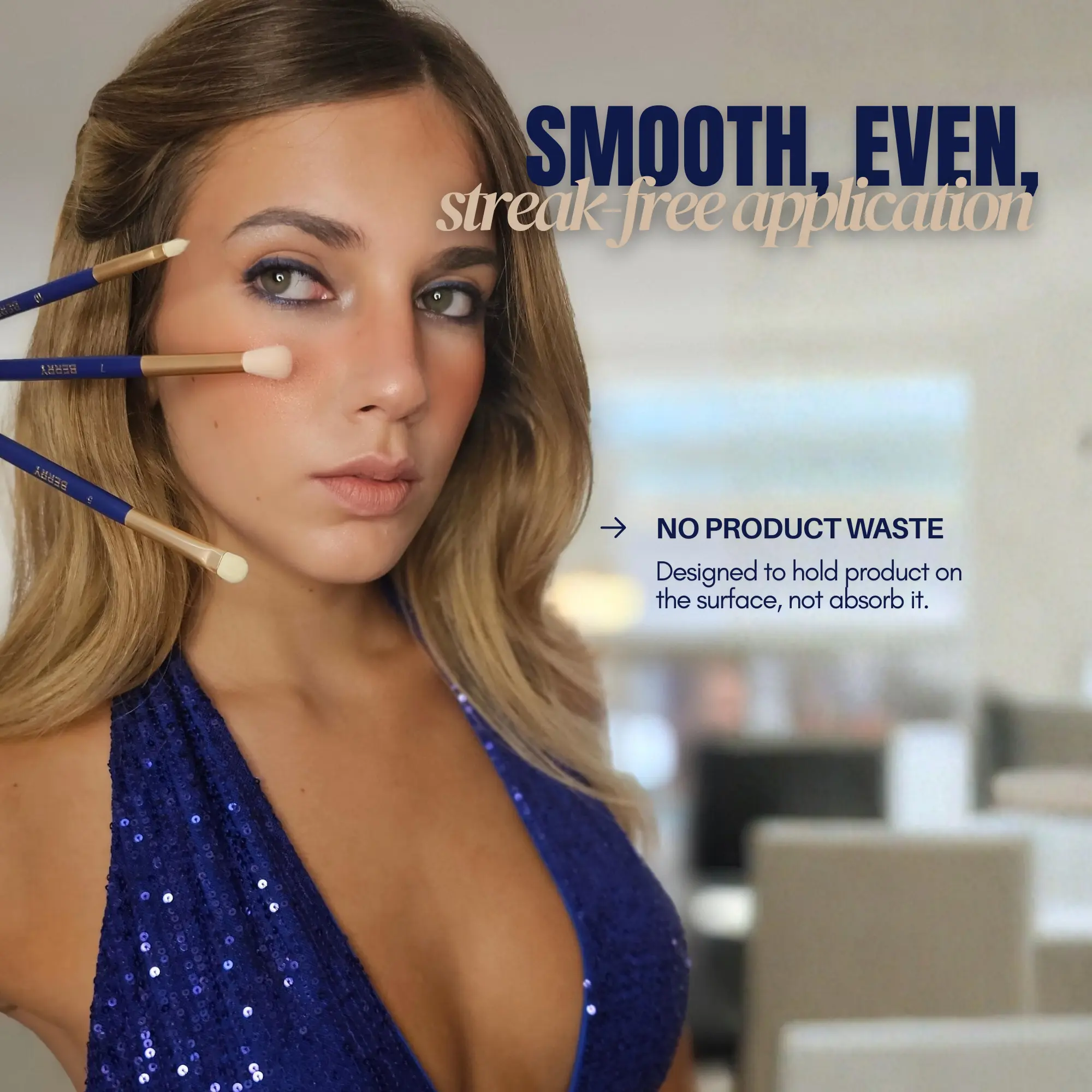 NO PRODUCT WASTE — Better Pickup, Better Release: Microcrystalline Silk Fibers are engineered to hold product on the surface — not inside the bristles — giving you more control and less waste with every application.