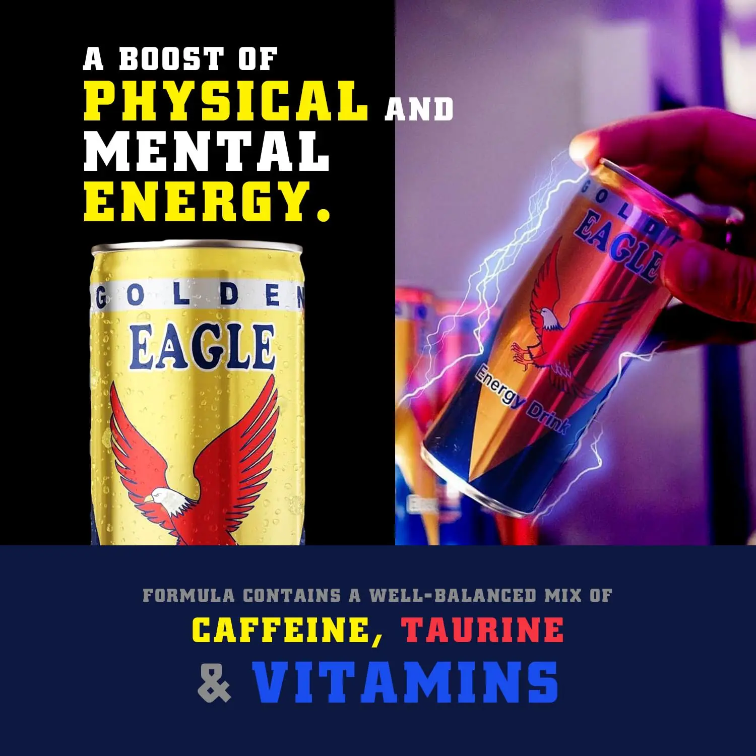 Indulge in the Golden Eagle Energy Drink and enjoy a refreshing drink that keeps you going!