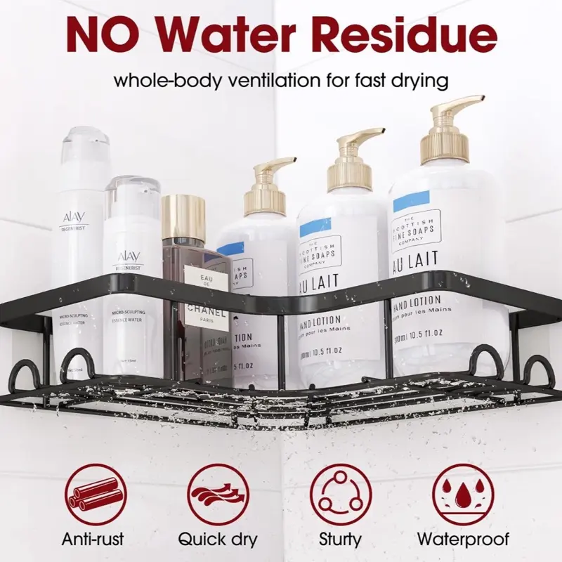 ·Hassle-Free Installation: With an adhesive mounting system, this corner shower caddy offers a drill-free and straightforward installation process, saving time and effort.