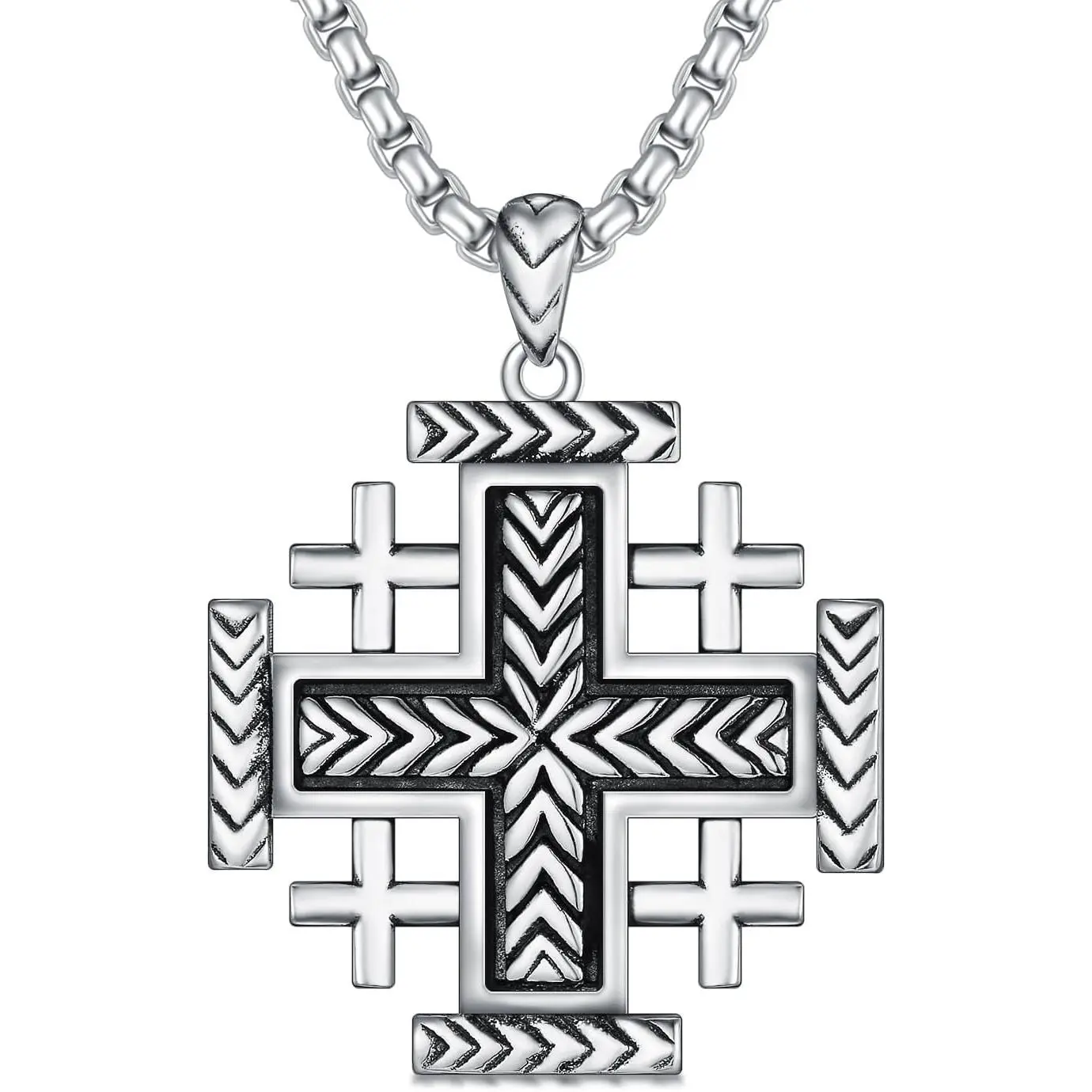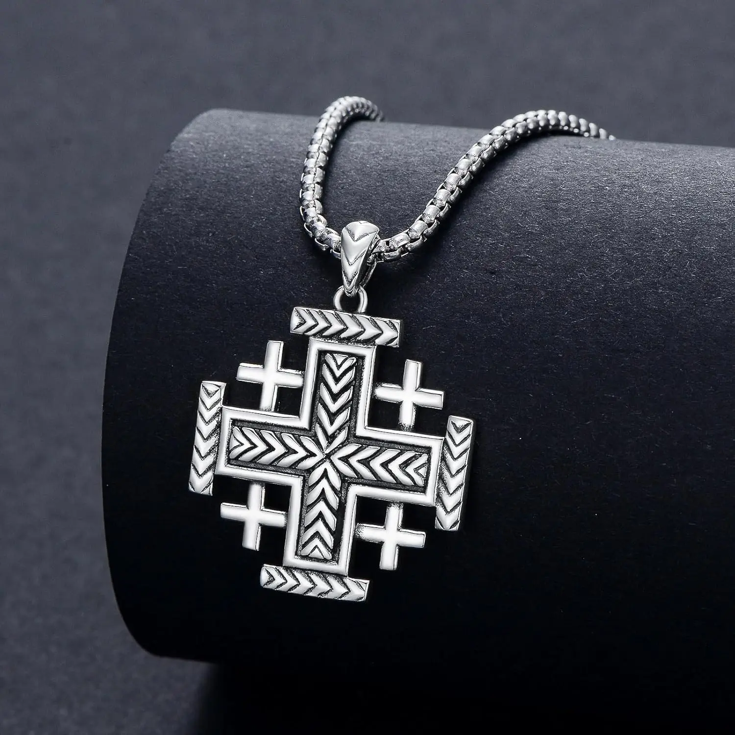 Jerusalem Cross Necklace 925 Sterling Silver Templar Crusaders Cross Necklace Jerusalem Pendant Jewelry for Men Women