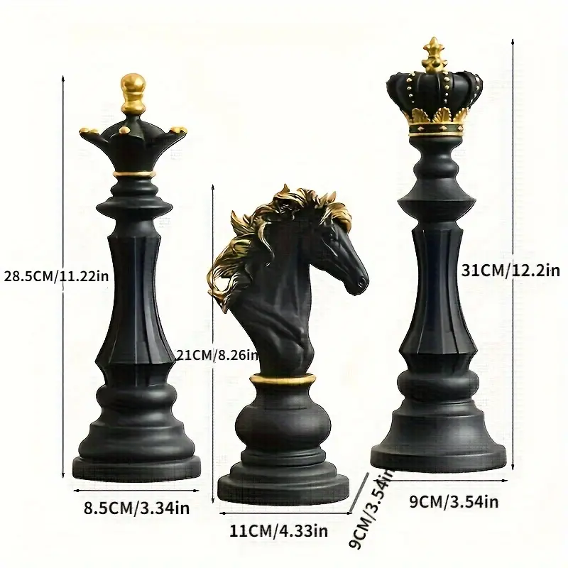Set of 3 Resin Vintage Chess-Inspired Figurines - Elegant Black Home Decor Statues with Regal Design, Durable Room & Table Decorations, Unique Gift Idea for Christmas, Fits Multiple Room Types - Decorative Collectible Pieces Ornaments