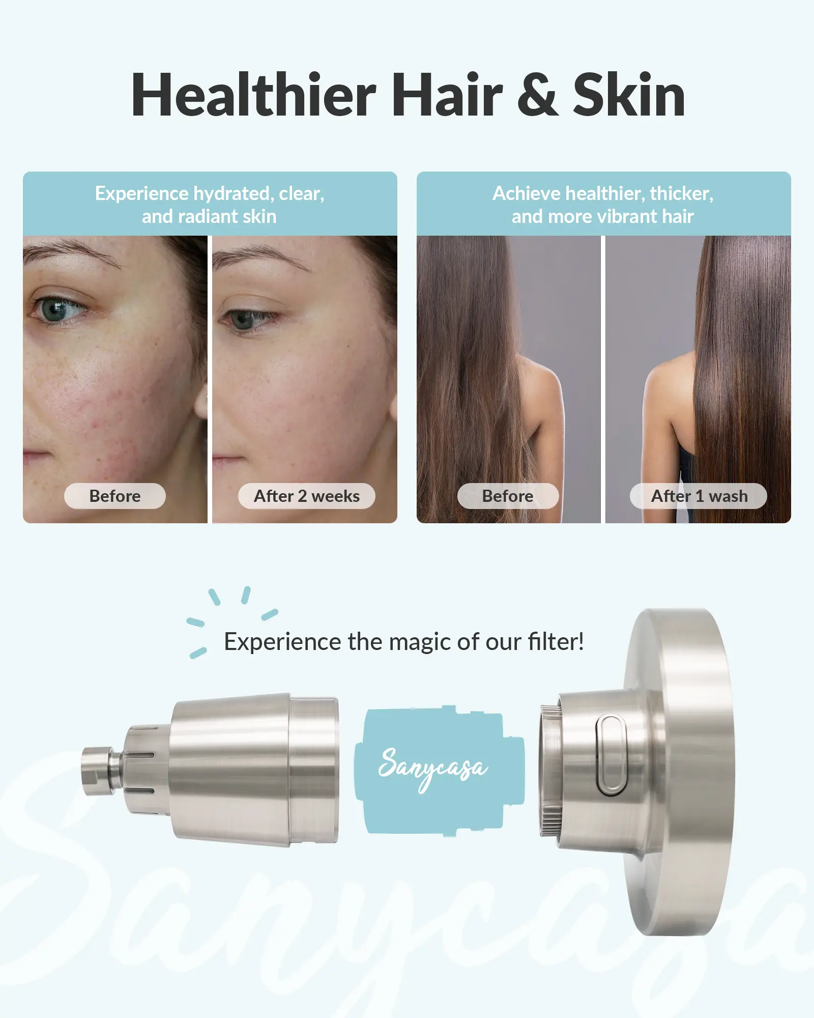 ·Recommended Sanycasa Shower Head - Using a unique filter structure, we have increased the proportion of KDF-55. After laboratory testing, SANYCASA shower heads can filter out at least 98% of harmful substances, including chlorine and heavy metals, repair the skin's natural barrier, improve the skin's repair ability, and protect your skin and hair from irritation