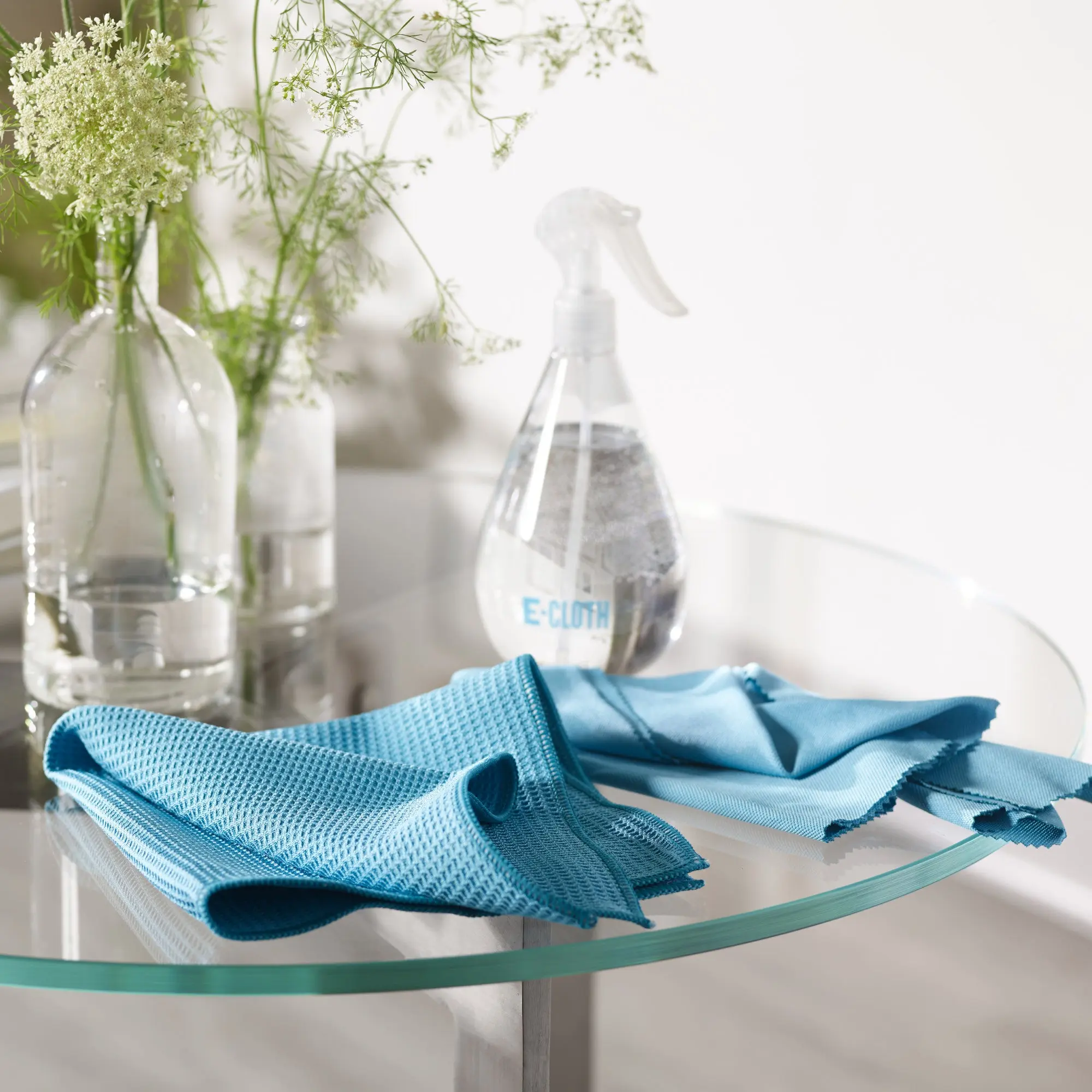 Cleaning with blue mystery sprays and mountains of paper towels makes us uneasy, too. That’s why there’s the E-Cloth Window Cleaning Kit. It’s all you need for sparkling windows and shiny surfaces. Just dampen the Window Cloth and wipe. Then follow with the dry Glass & Polishing Cloth, erasing streaks for a perfect finish. Masses of microscopic fibers in the waffle-weave Window Cloth grab grime, dust, and more from smooth surfaces like windows and mirrors, as well as frames and sills — and they don't let go until rinsed. Generously sized, the Cloth swiftly handles even large windows with just a quick rinse or two. Next comes the microfiber Glass & Polishing Cloth, our secret to a satisfying, streak-free finish. Just wipe — and admire the results. Made to toss in the laundry instead of a landfill, our Window Cleaning Kit is backed by our 1-year or 100-wash promise.