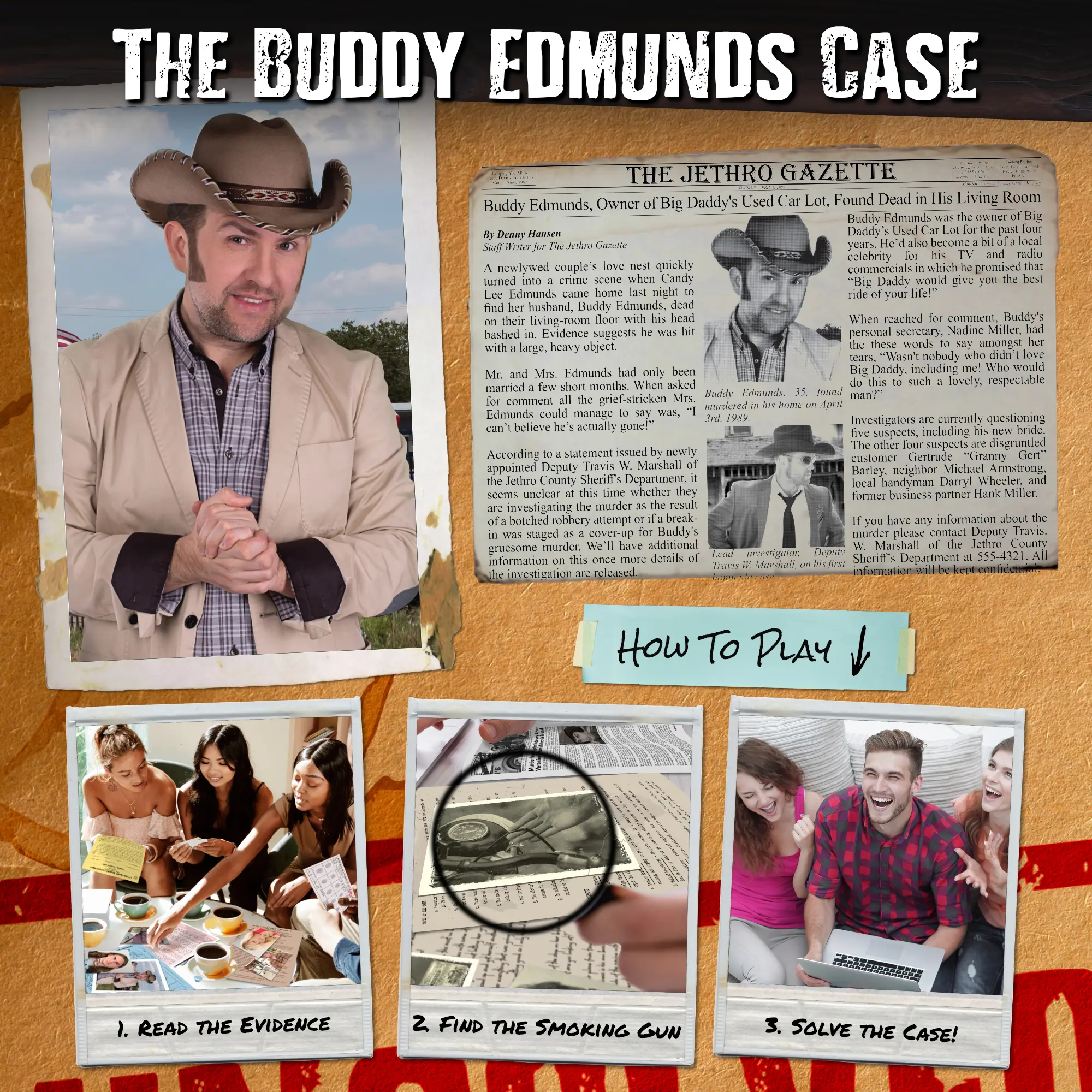 ·1 x Unsolved Case Files Game (The Buddy Edmunds Case) – 13" (L) x 10" (W) x 0.50" (H)