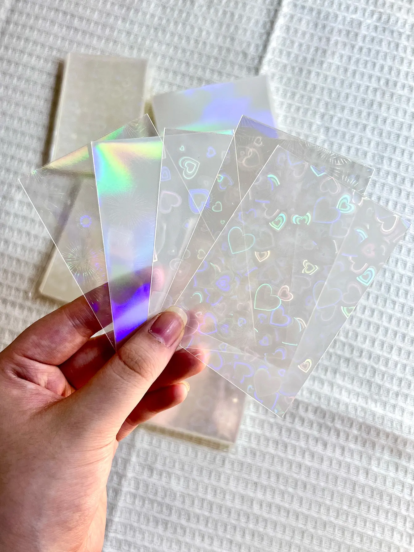 Protect your precious cards and photos with our 50pcs Transparent Flash Two-Layer Card Protector Film, designed for photo albums, trading cards, and back-to-school supplies. These high-quality protective films ensure your memories and collections stay safe and pristine.