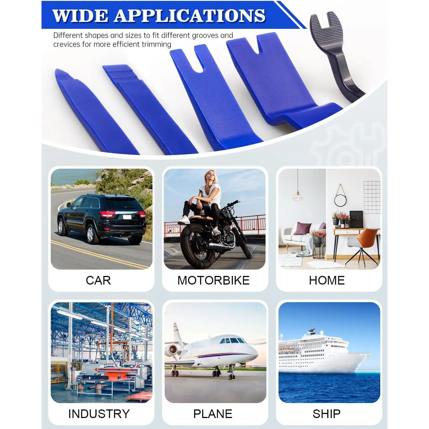 19 count Trim - Works for audio/radio system installing or removing, door panel, moldings, emblems, window trims or automotive interior repairing and furniture restoration.