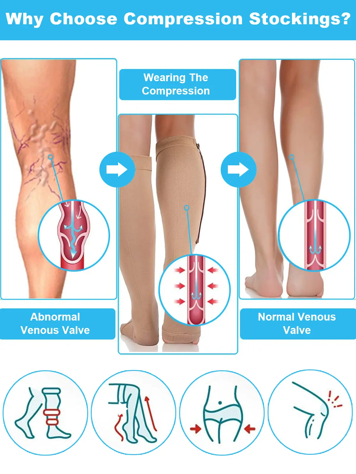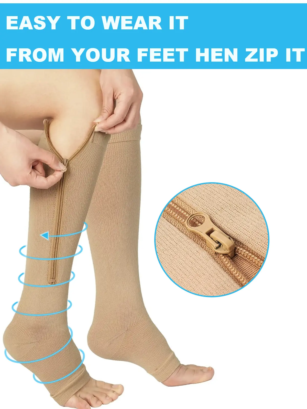 Don't be fooled by the cheap, low-quality, and thin socks offered by our competitors. We pride ourselves in the quality and effectiveness of our Zippered and Non Zippered Compression Socks.