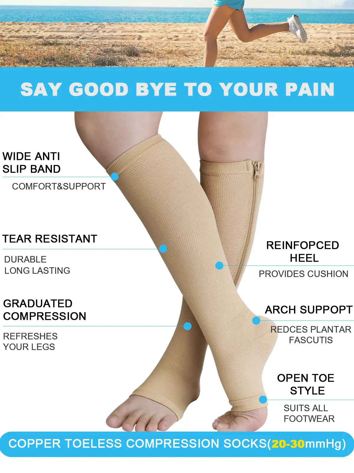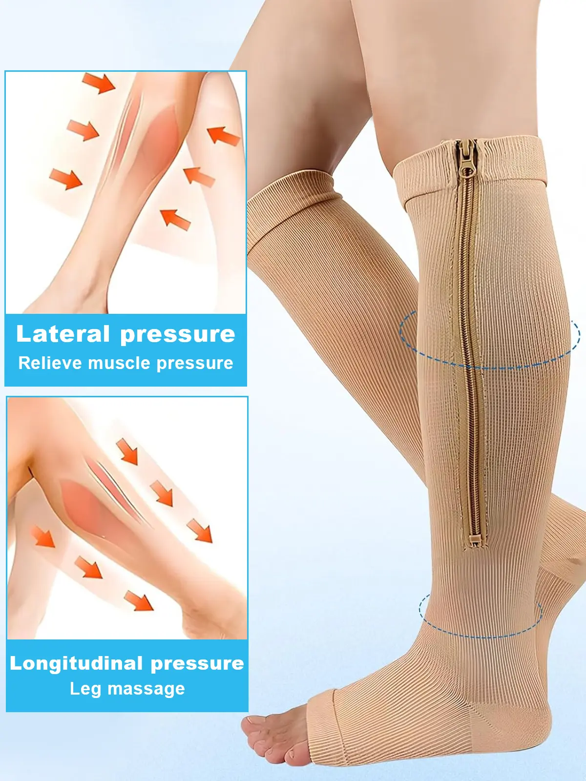 Support your ankle, foot-arch, and shin with these high quality zippered and non zippered compression socks with medical-grade gradual compression.