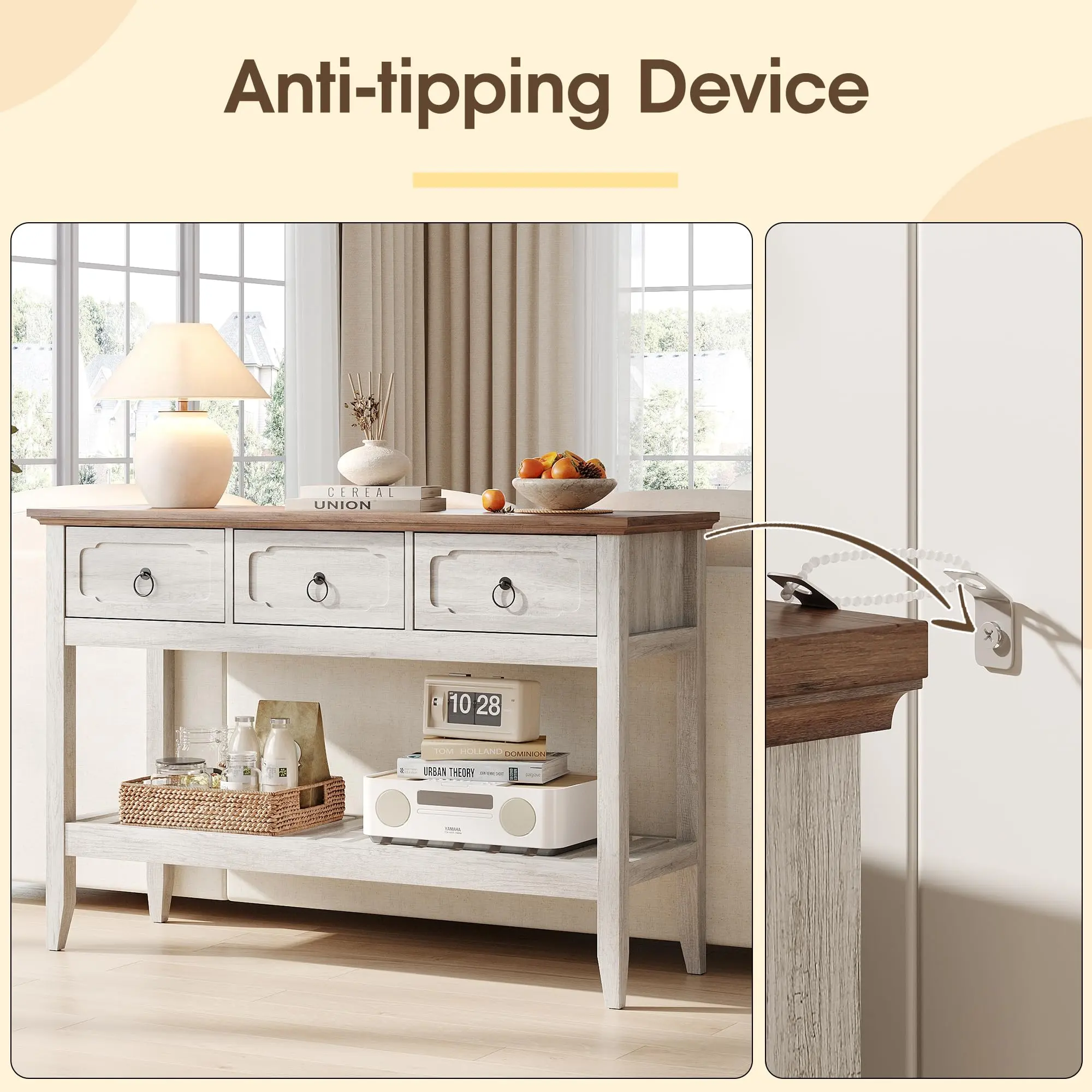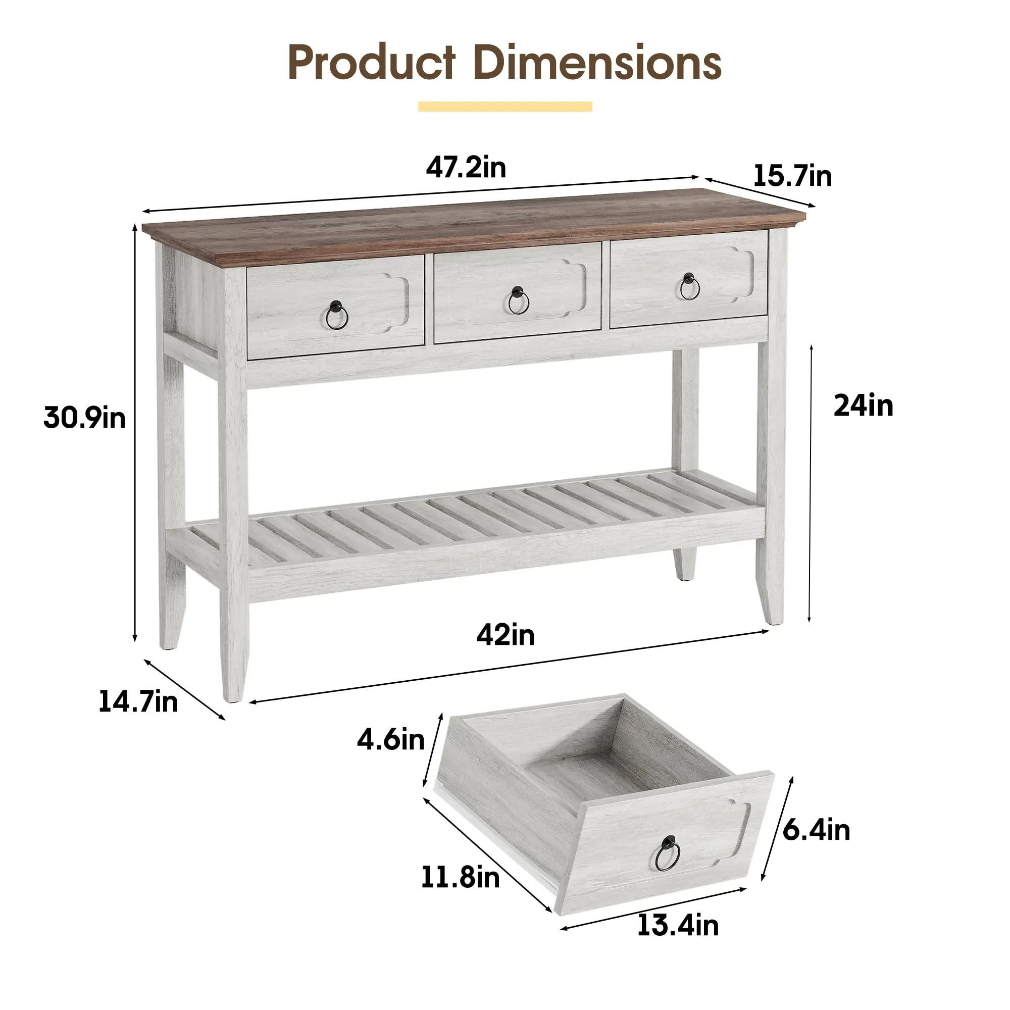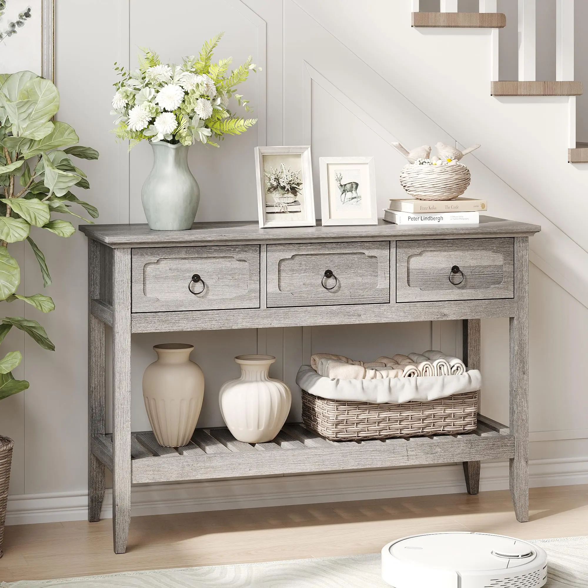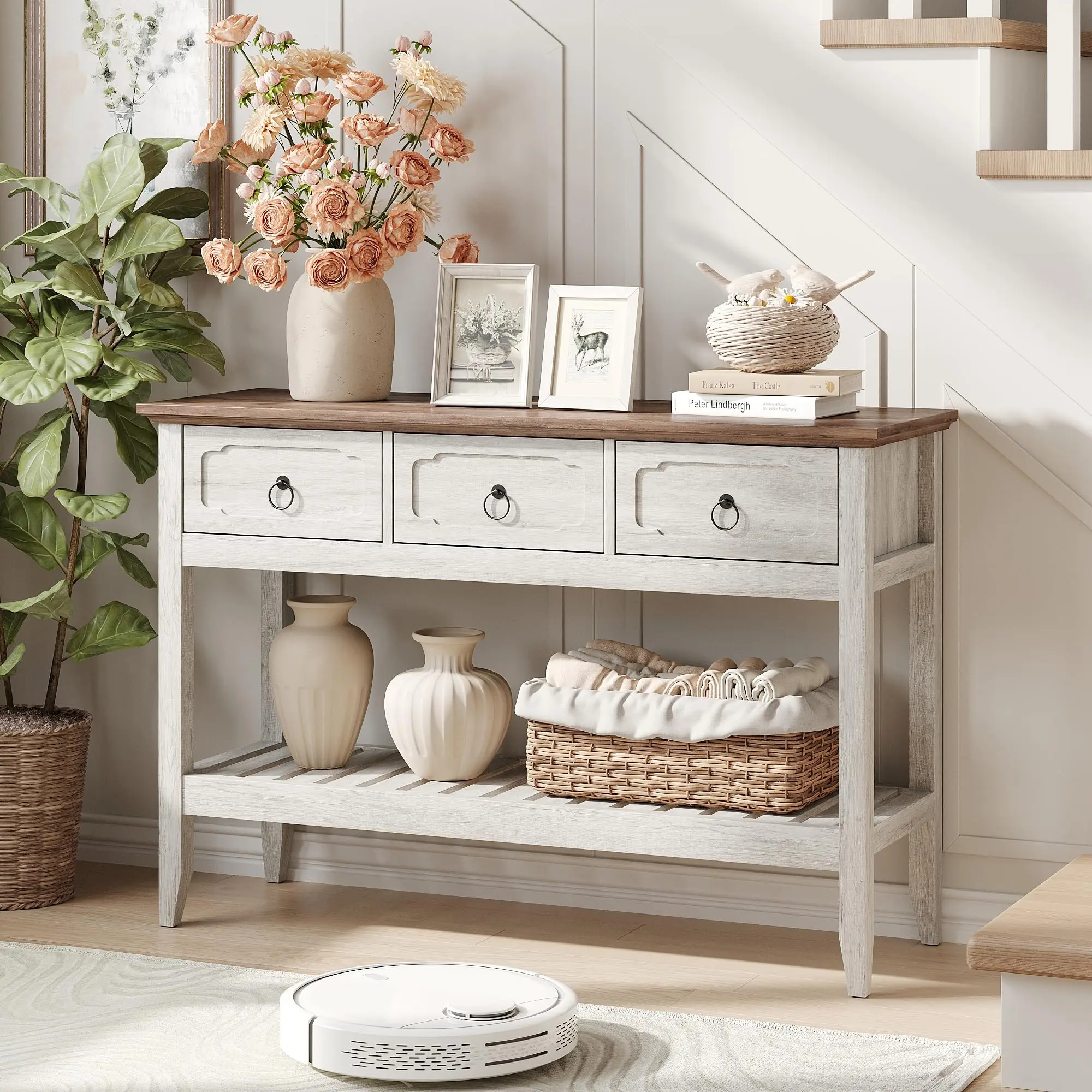 Large Storage Space: Featuring 3 large drawers and open shelves, this entryway furniture provides ample storage for your everyday essentials, keeping your space organized and clutter-free.
