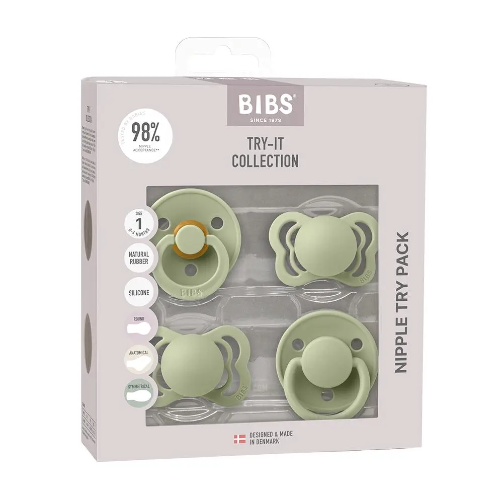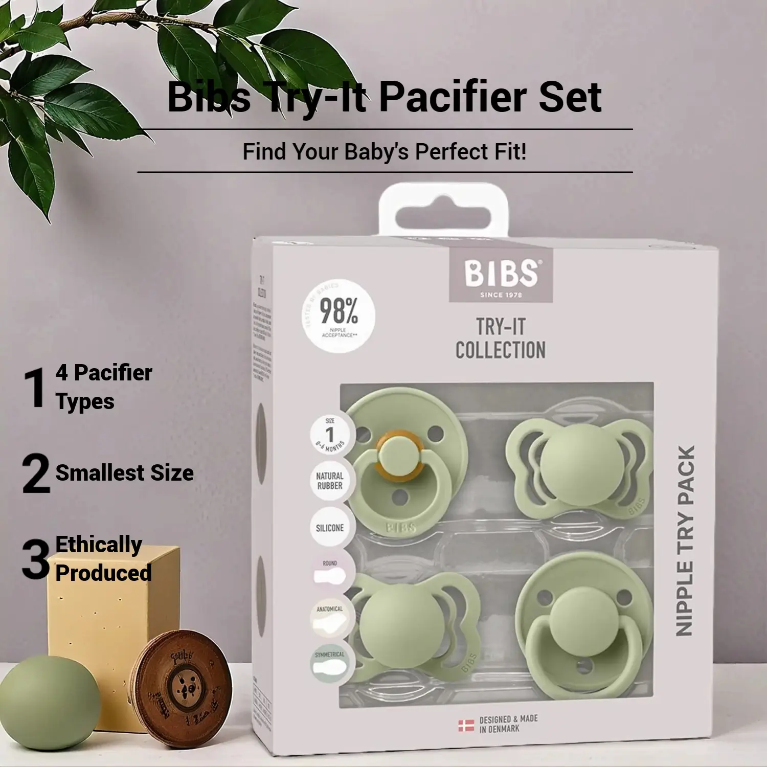 Discover the BIBS Try-It Collection, designed to meet the diverse needs of babies and parents alike. Each pacifier in the collection is crafted to ensure a perfect fit for your baby, regardless of size or shape.