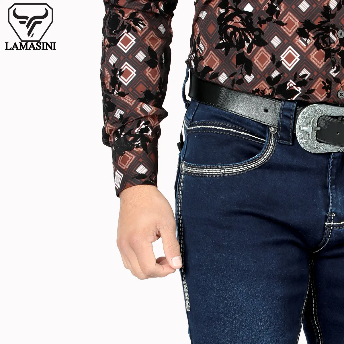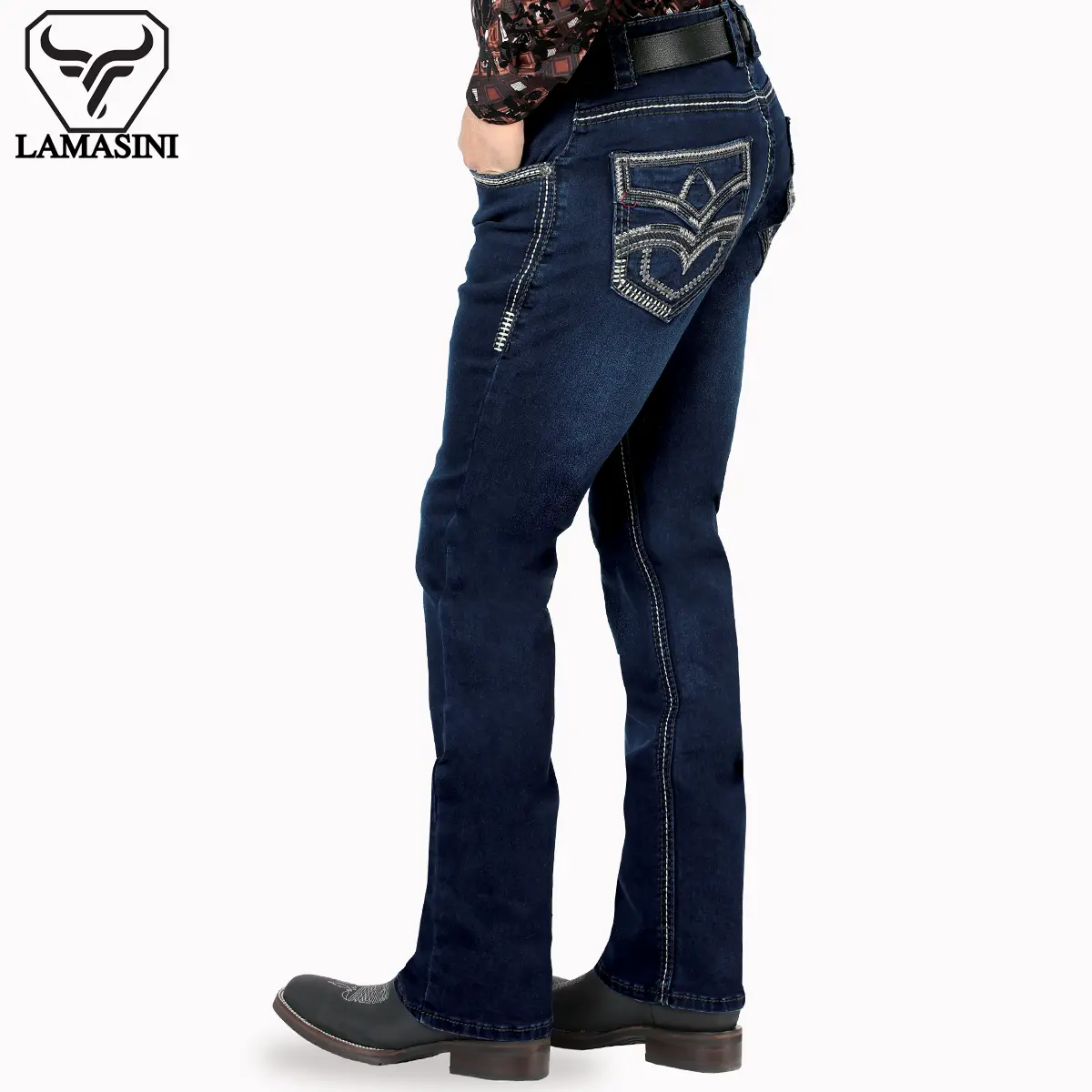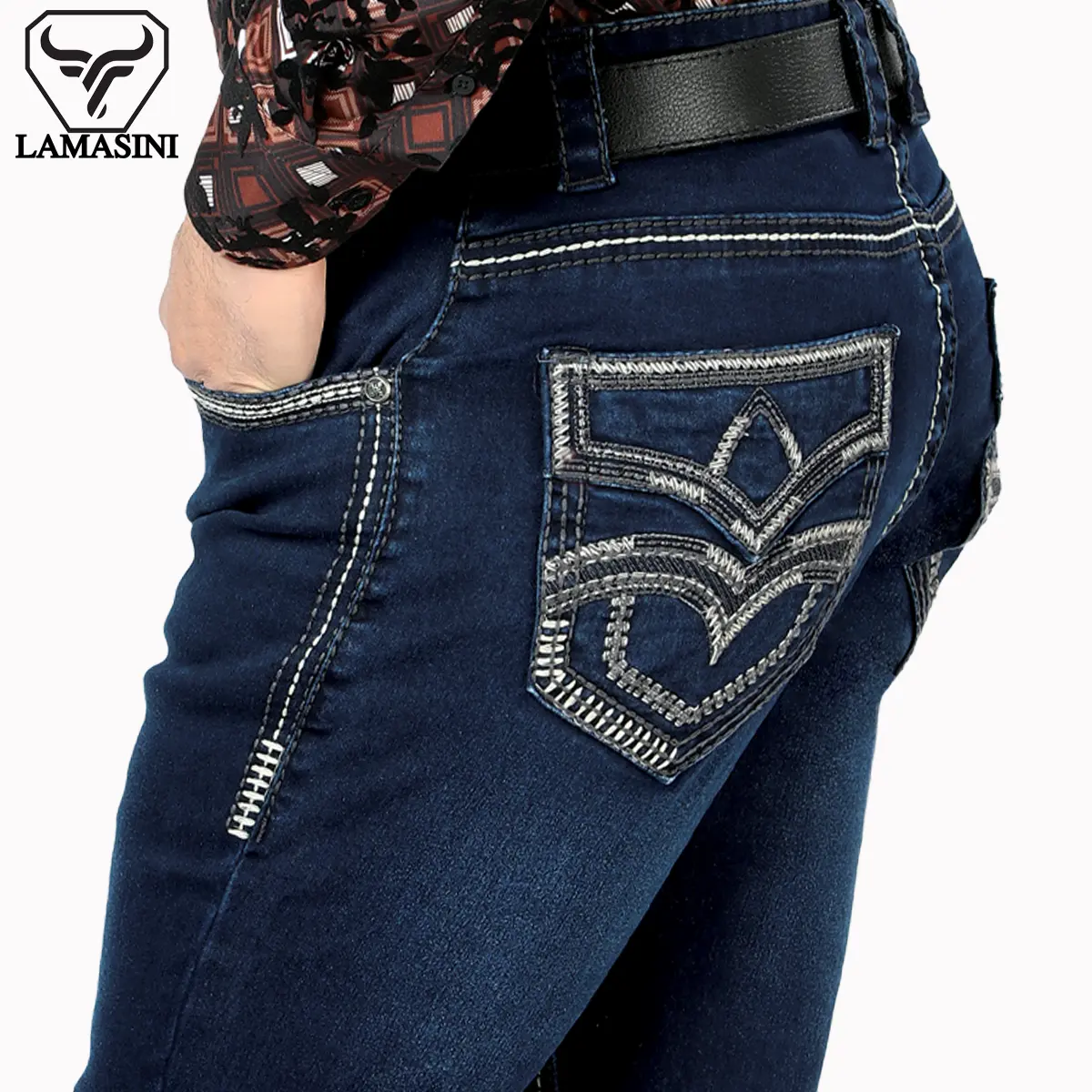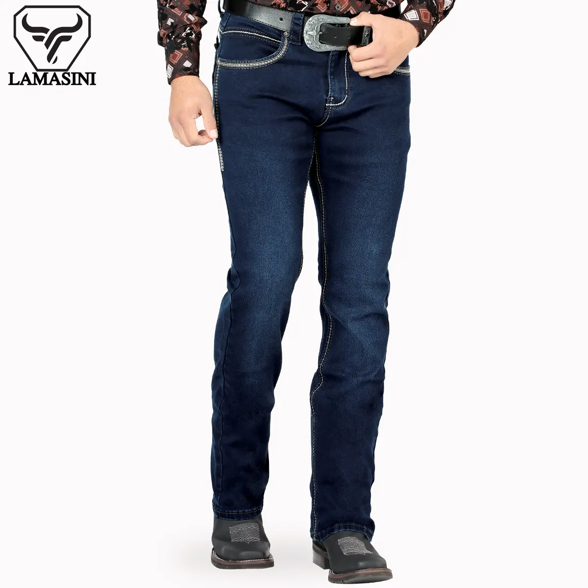 LAMASINI JEANS Cowboy Heavy Denim Jeans LM1867 Dark Blue - Classic Design, Comfortable Fit, Casual Style for All Seasons