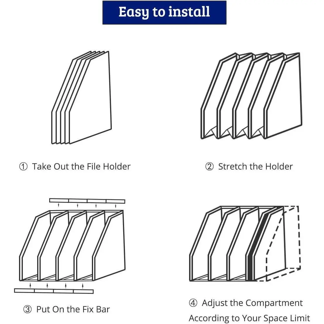·USING NOTES: This magazine binder holder is easy to fold and expand. Gently pull the sides to open the foldable file holder, install the fix device then you could use it. Each column can be folded individually, you can use it according to your needs.
