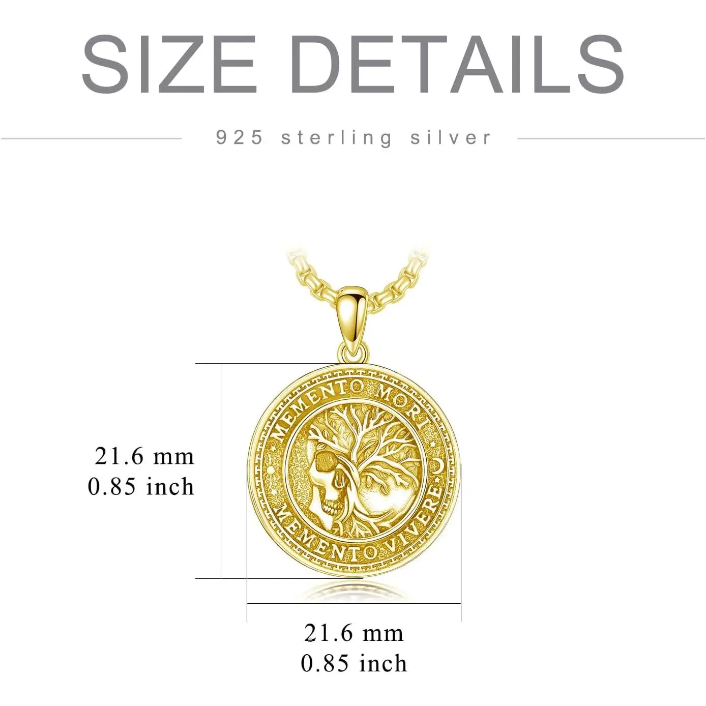 Memento Necklace for Men 925 Sterling Silver Memento Vivere Pendant Necklace Gothic Skull Pendant Amulet Jewelry -Gold