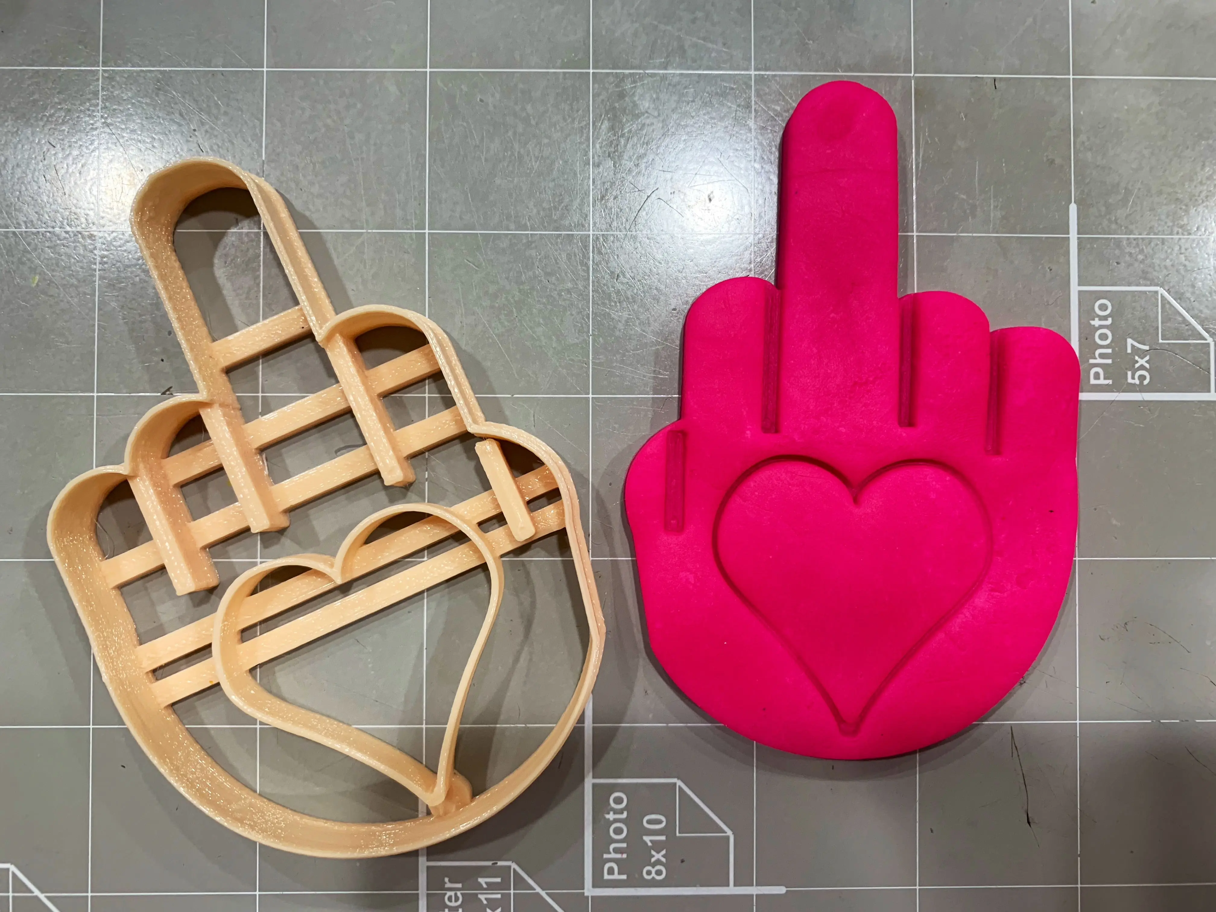 This listing is for Valentine Middle Finger with Heart Imprint Cookie Cutter. Great size to make cookies for any fun occasions.