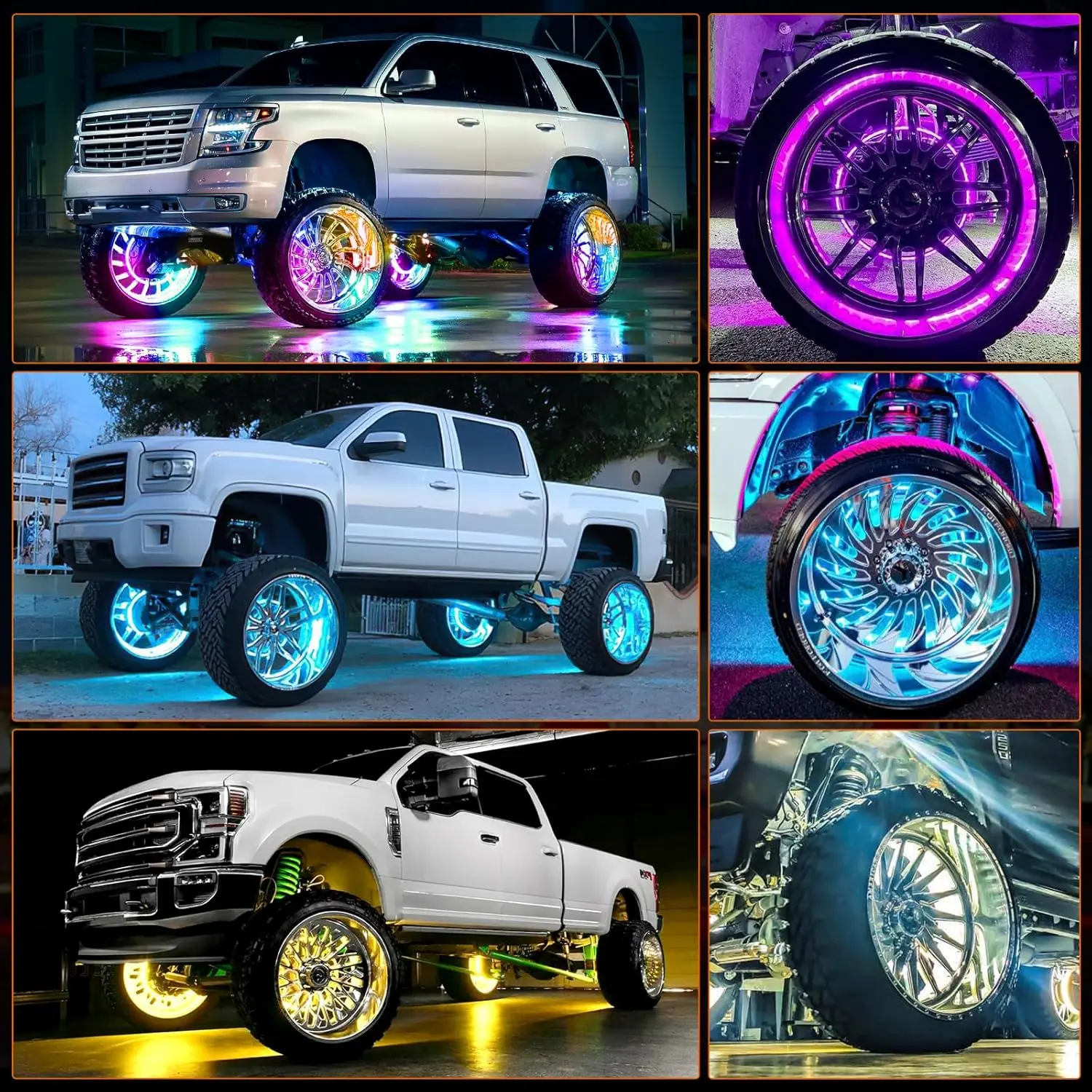 RGB wheel light kit upgrade. These 17.5” LED wheel lights add customizable colors and make your truck stand out at night. App controlled with multiple color modes and patterns. Perfect for trucks, show builds, or anyone wanting a unique look. Buy now while the sale is active. Tap the link to order. #RGBLights #TruckMods #TruckLighting #ChevyTruck #TruckBuild