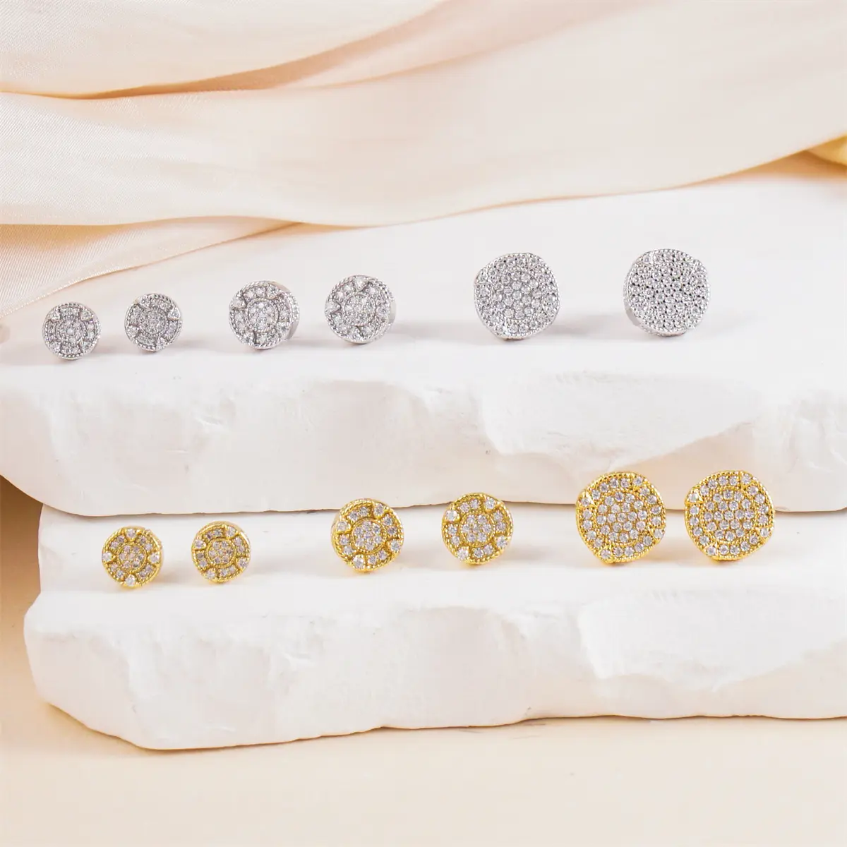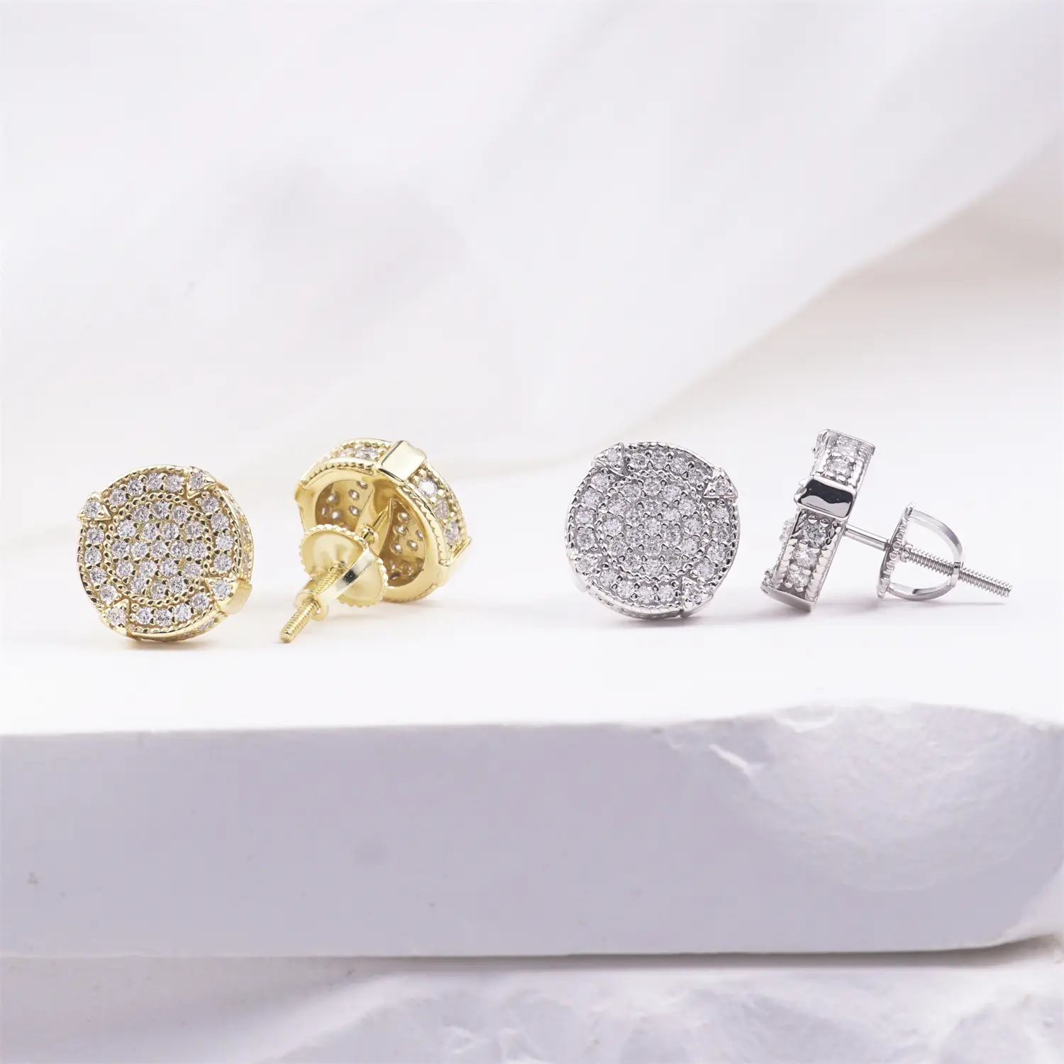 ·The bold circular studs are fully iced out design, embodying a hip-hop-inspired aesthetic.