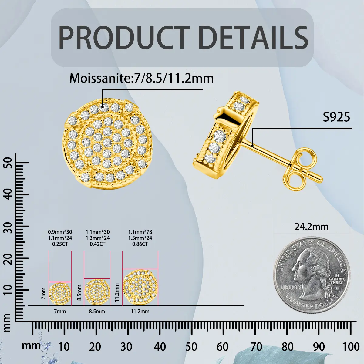 ·Crafted from premium S925 sterling silver, they are durable and hypoallergenic, ensuring long-lasting shine and comfort for daily wear.