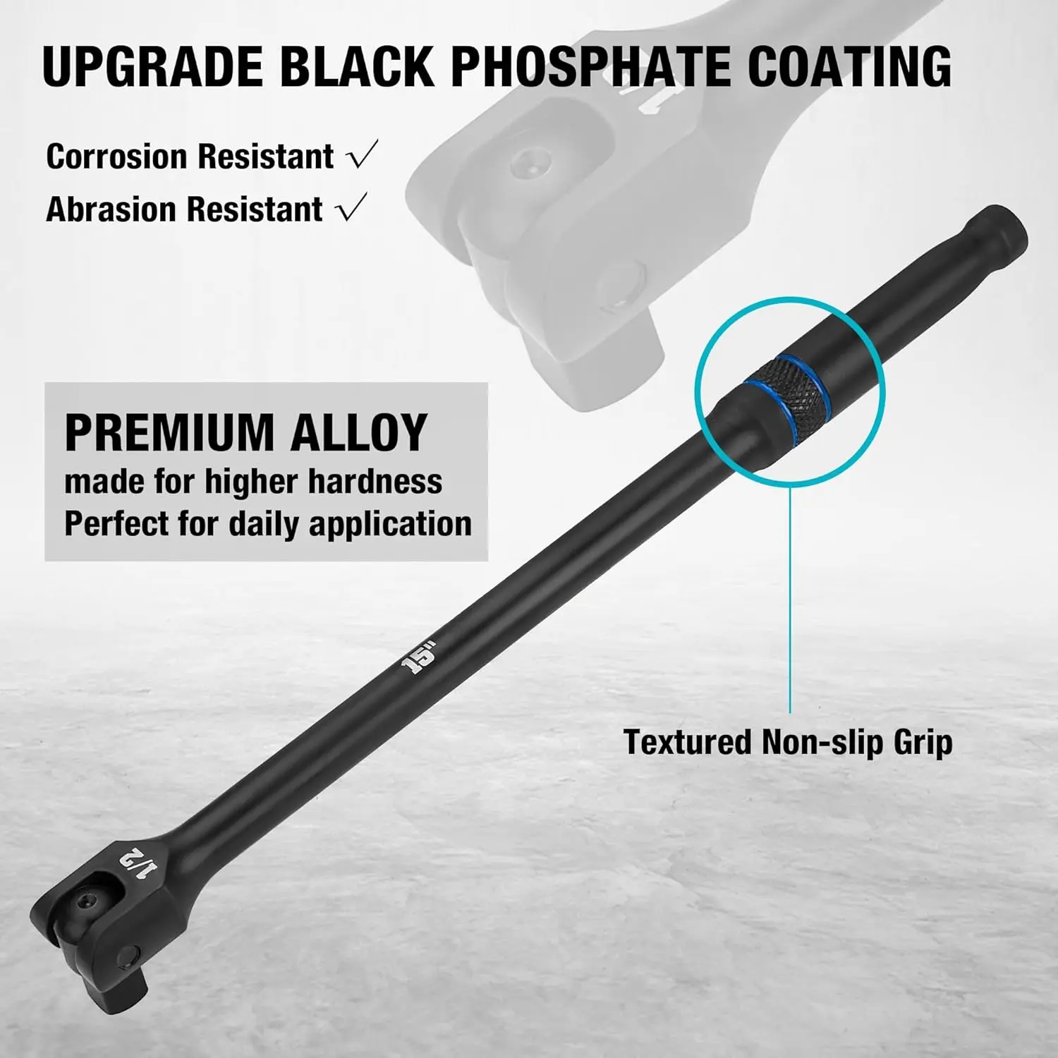 High Quality: Made of premium high-strength alloy steel with upgrade black phosphate coating, the heavy duty breaker bar kit features a -resistant forged and hardened chrome alloy steel construction for maximum strength and longer service life