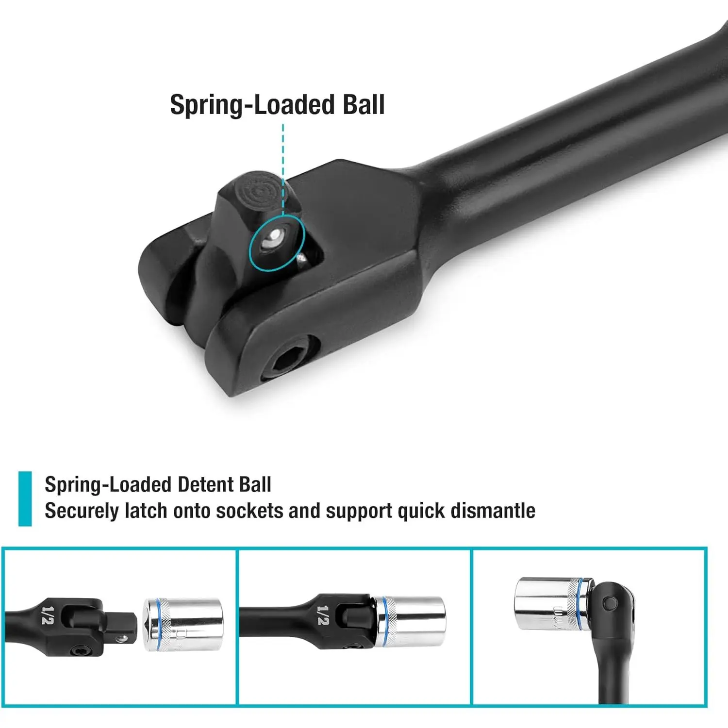 Tight Holding: Spring-loaded detent ball allows your sockets to stay on tight while loosening tough and lug nuts so that you can never worry about dropped socket again
