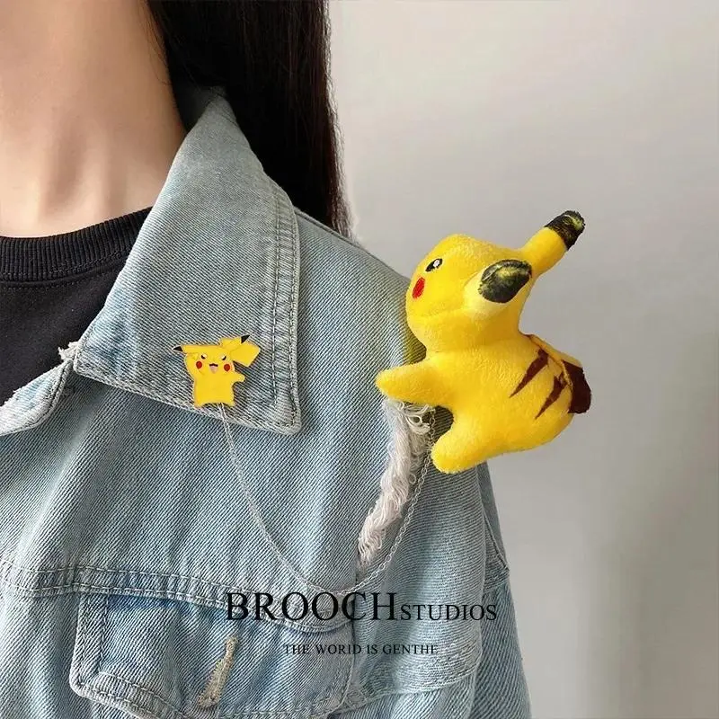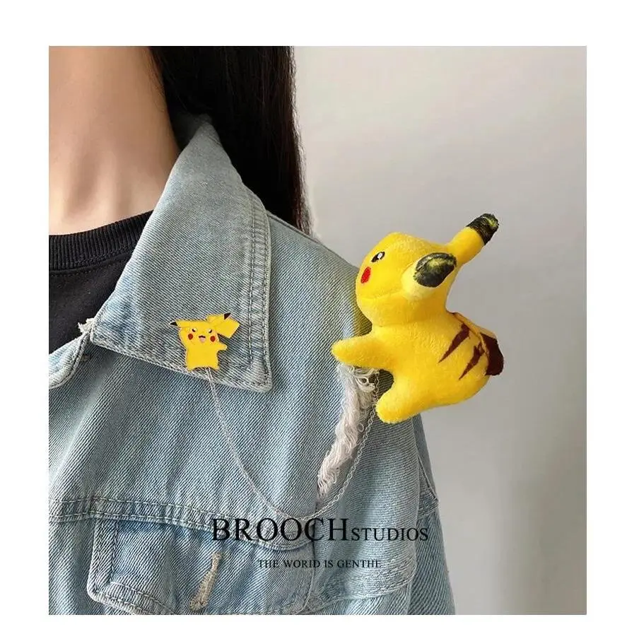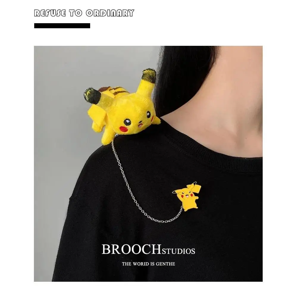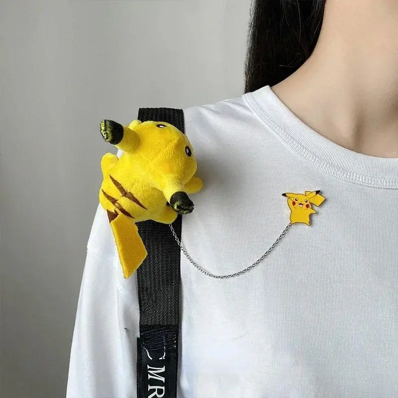 Pokemon Cartoon Doll Pikachu Alloy Pin Clothing Bag Plush Brooch Gift for Child Children Student Backpack Accessories Decoration
