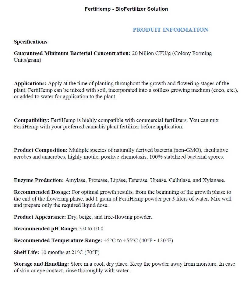 Fertihemp is a dry powder cannabis growth supplement that improves nutrient efficiency and supports stronger flowering. It is not a fertilizer.