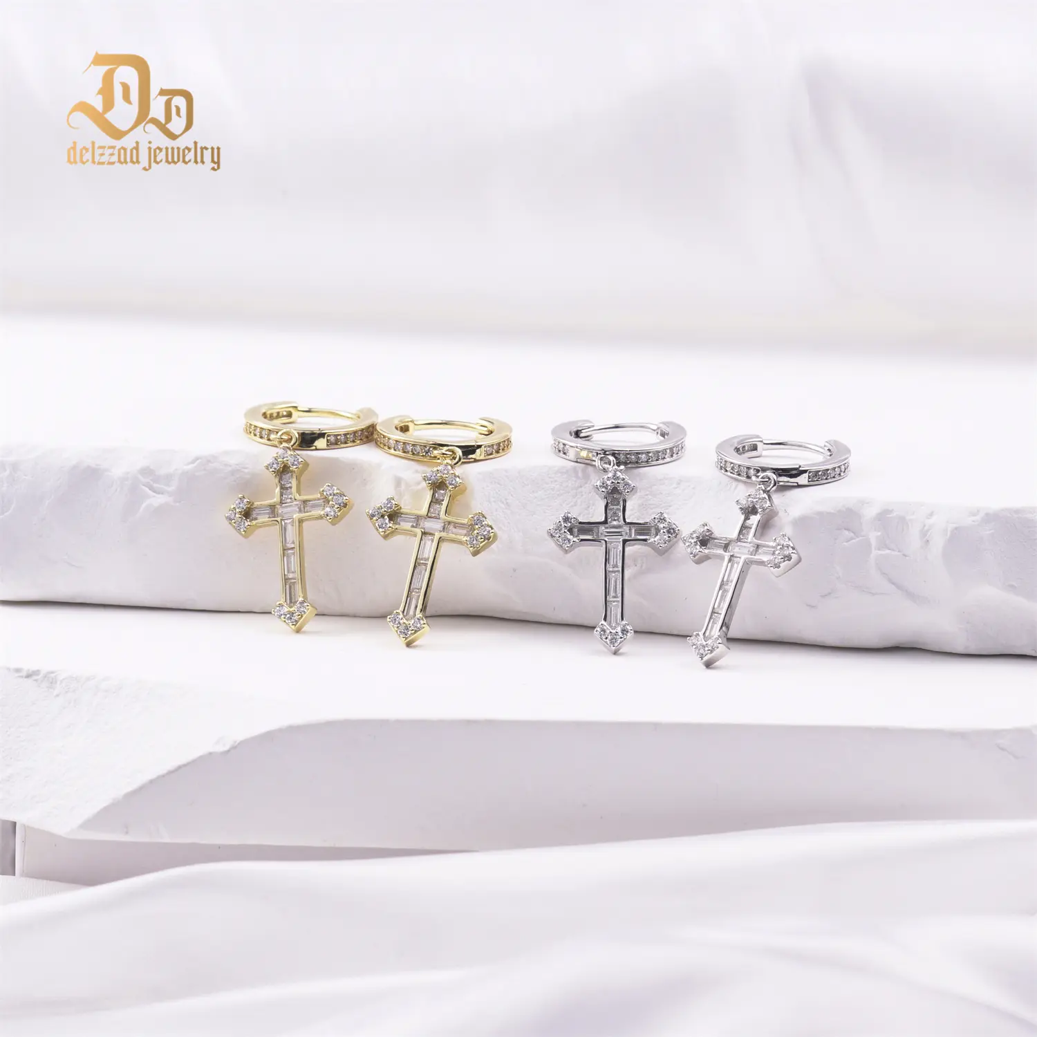 ·The bold cross motif, set against a sleek hoop design, merges streetwear vibes with classic elegance.