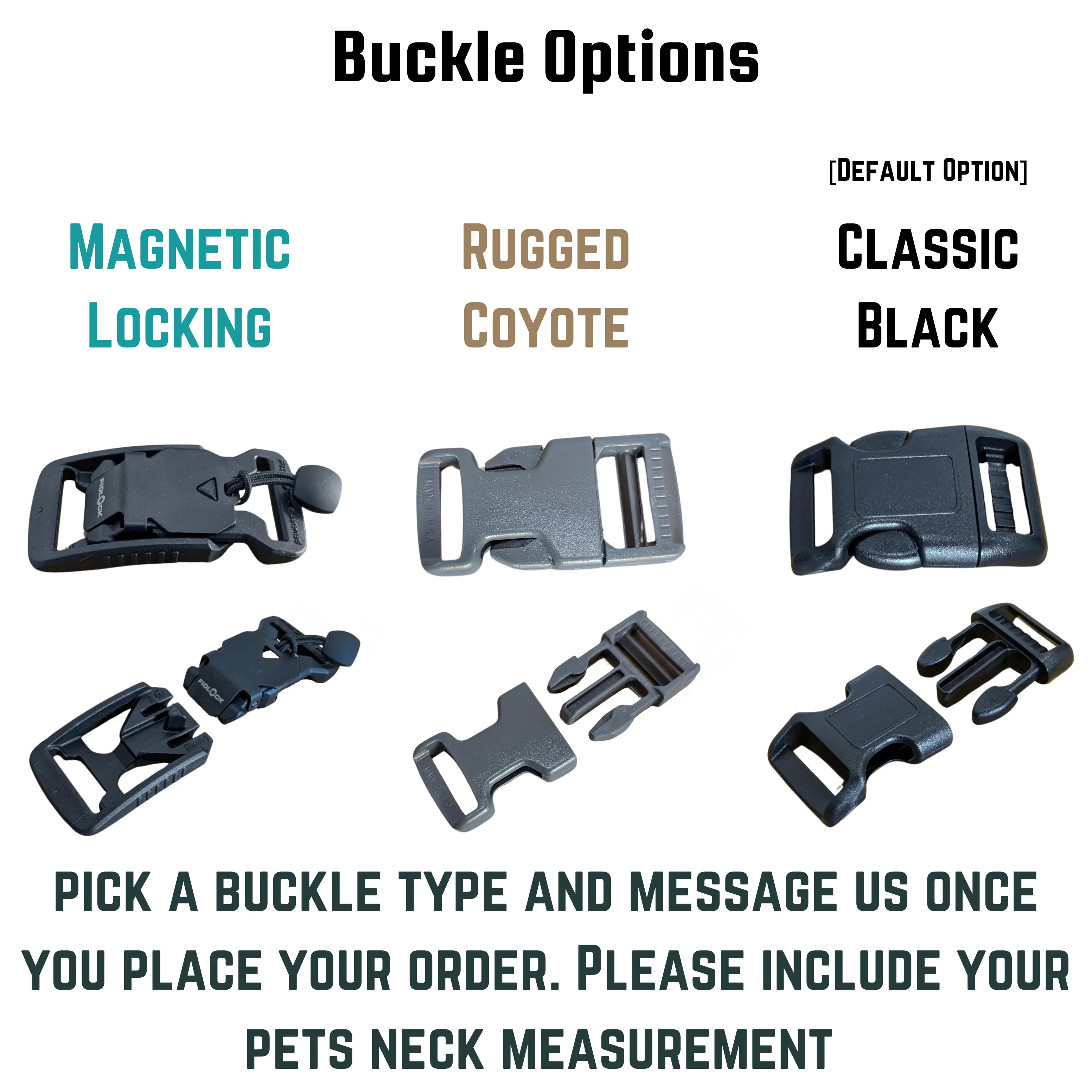 Built to be as adventurous, stylish, and dependable as your dog, our handcrafted Biothane collars are designed with both quality and practicality in mind. Each collar features a quick-release, injection-molded mil-spec plastic buckle for easy on and off while ensuring a secure fit during any activity.