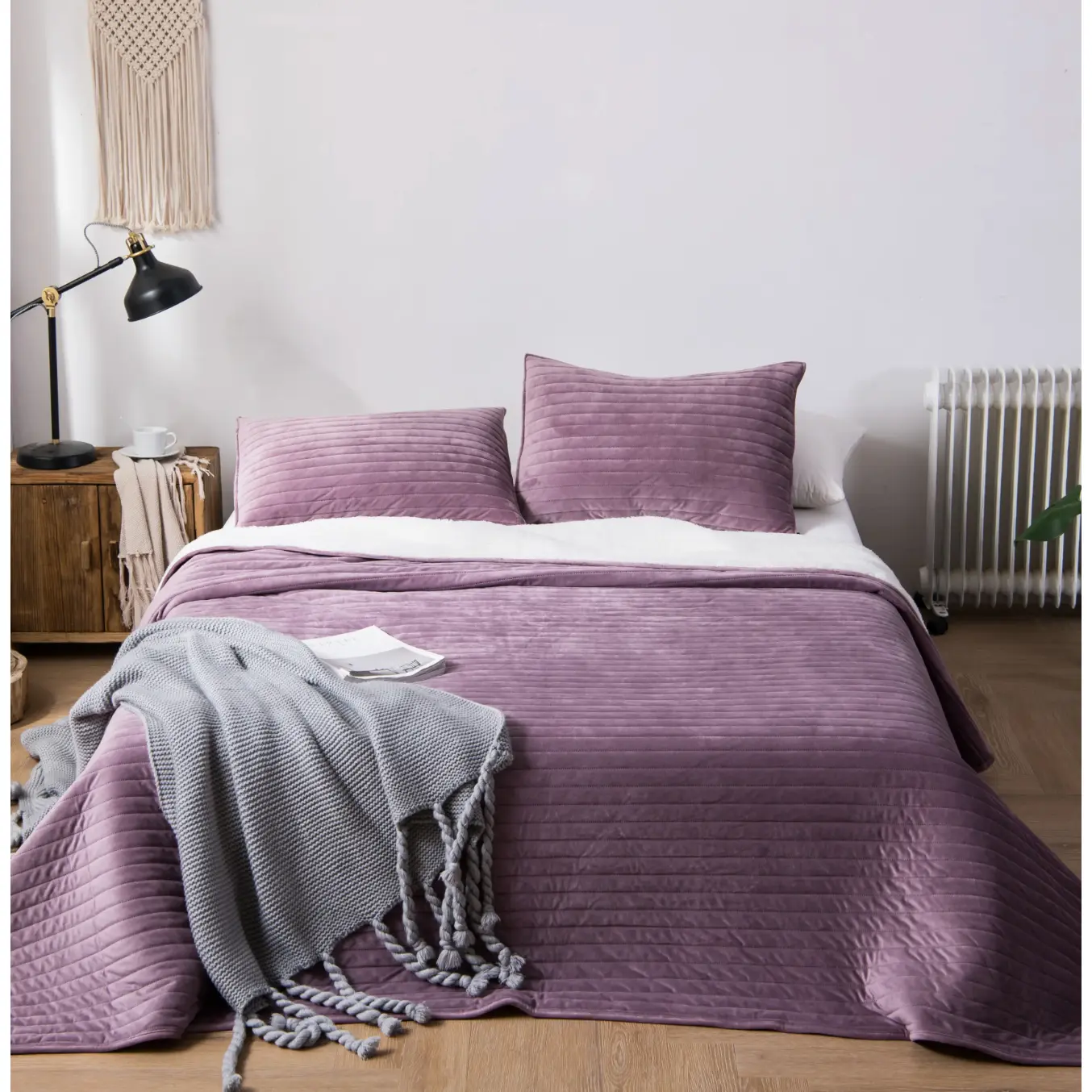 Plush Velvet Reversible Quilt Set, Rose Mauve