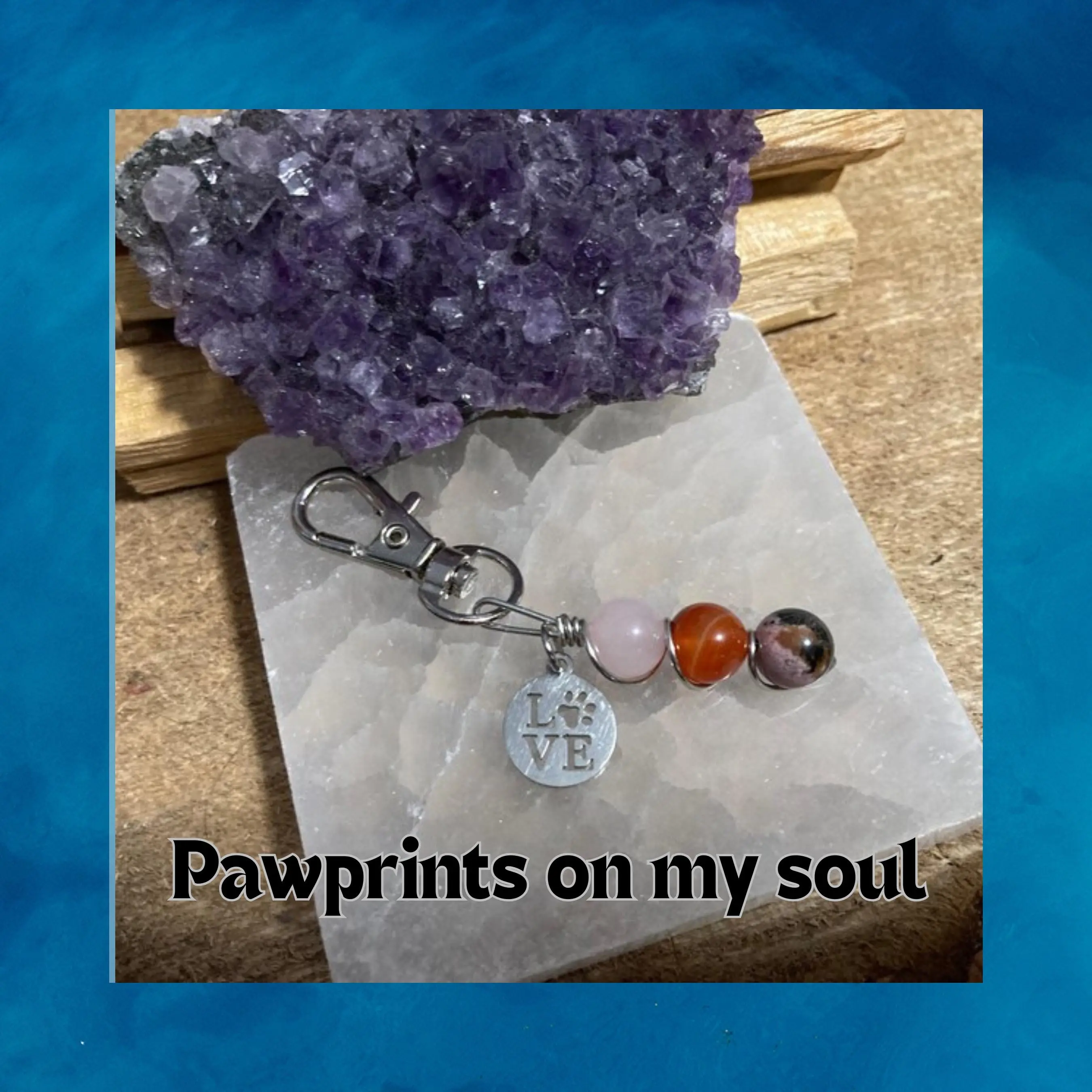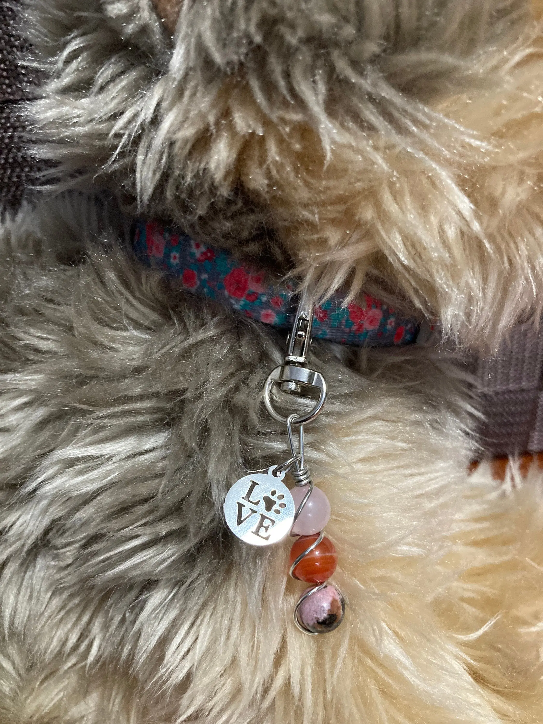 Whether it’s clipped onto a dog collar, cat harness, or even your keychain, this charm adds a touch of elegance and intention. The wire wrapping enhances its natural beauty, making it a perfect gift for pet lovers who believe in the power of crystals.
