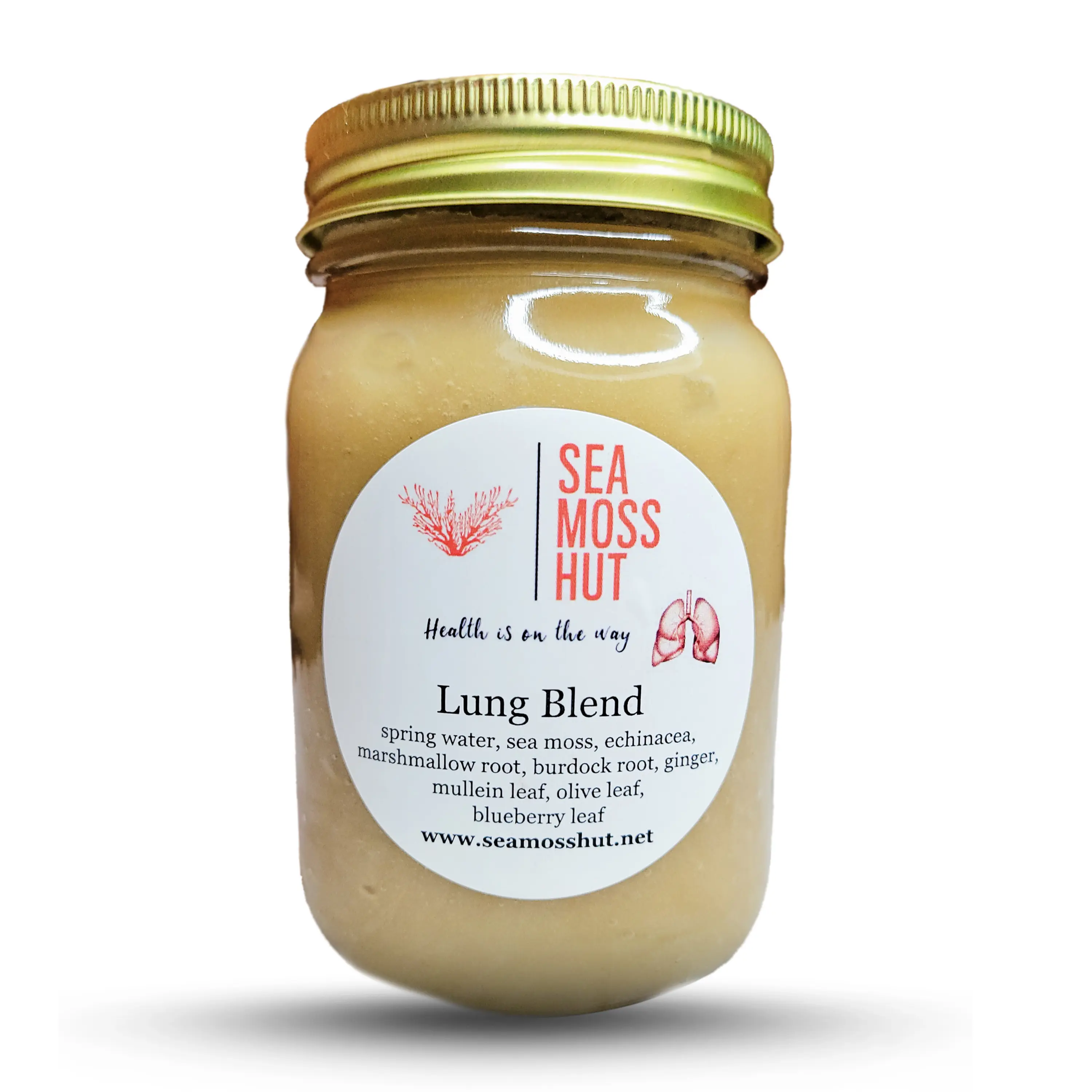 Our Sea Moss Lung Blend has contains powerful herbs like marshmallow root, echinacea, olive leaf, blueberry leaf, mullein leaf, and burdock root. These powerful ingredients along with our wildcraft sea moss collectively functions in maintaining lung health.