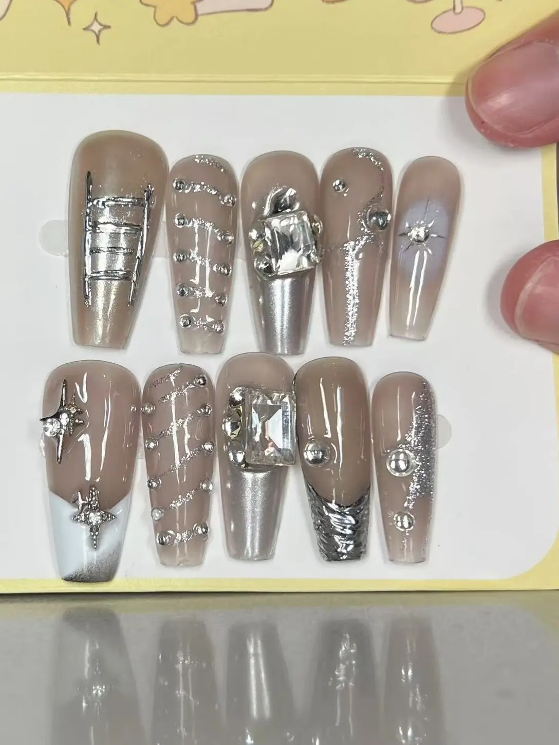 DBAA Hotties-Silver Press On Nail with Elegant Design for Versatile Use in Home Decor and Fashion