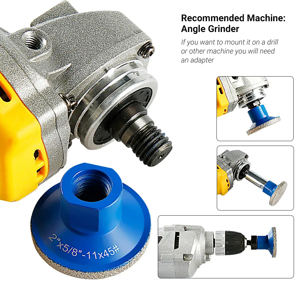Achieve invisible seams & flawless edges! This professional-grade 50mm diamond disc is engineered for precise grinding of countertop joints and edge profiling/shaping on quartz, marble, granite, tile, and stone. Its flat design and aggressive diamond matrix deliver smooth, controlled material removal with minimal vibration. Fits standard 5/8"-11 angle grinders - the essential tool for seamless installations and edge refinement. Ideal for eliminating lippage and creating perfect transitions.