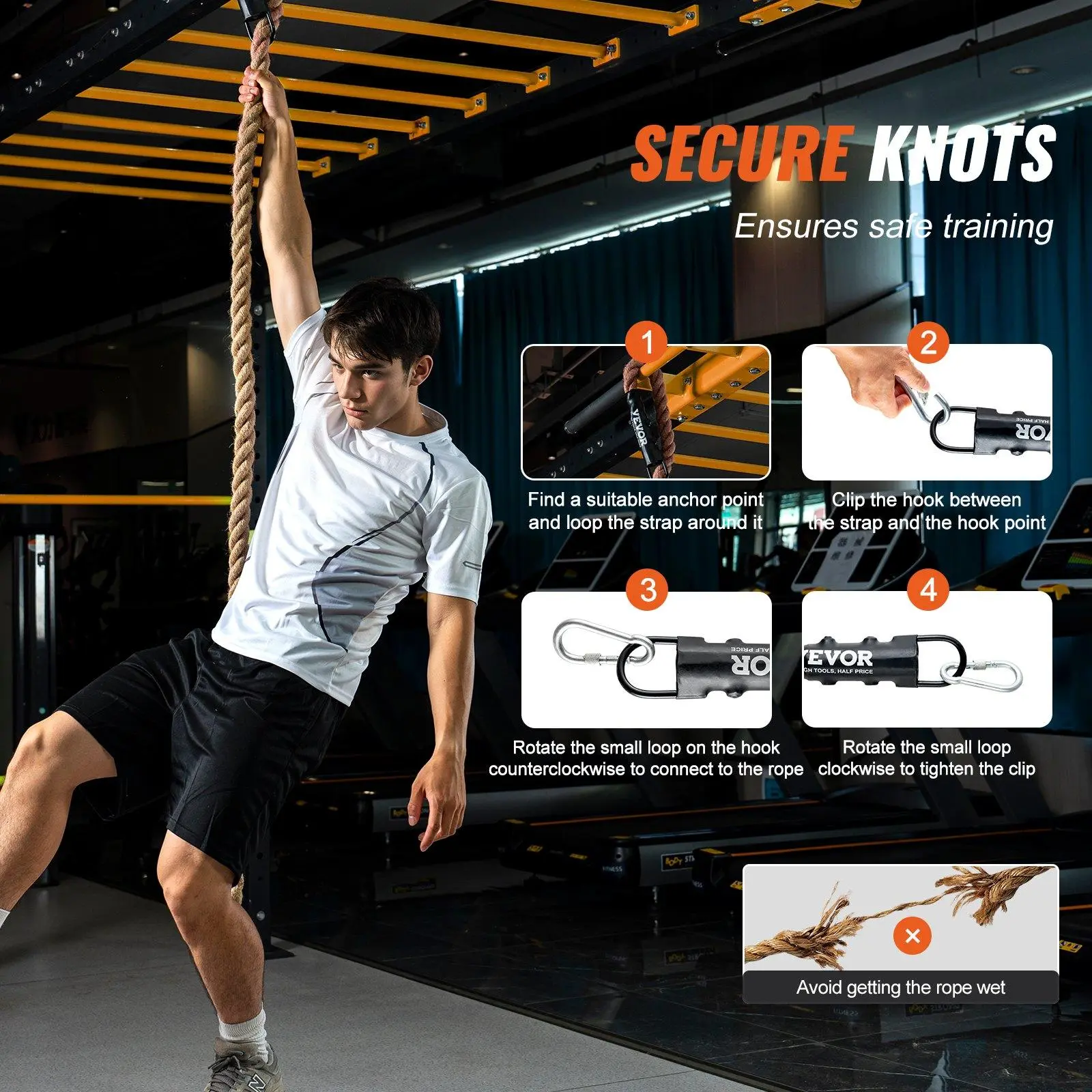 ·Heat Shrink Rubber Caps: Composed of 3 tightly wound strands of fiber, each end is fitted with heat shrink caps to protect the rope ends, preventing wear and loosening. Additionally, equipped with metal climbing hooks for easy attachment to any fixed point, allowing for indoor climbing exercises and strength training. Enhances strength, promotes fat burning, and provides higher safety during workouts.