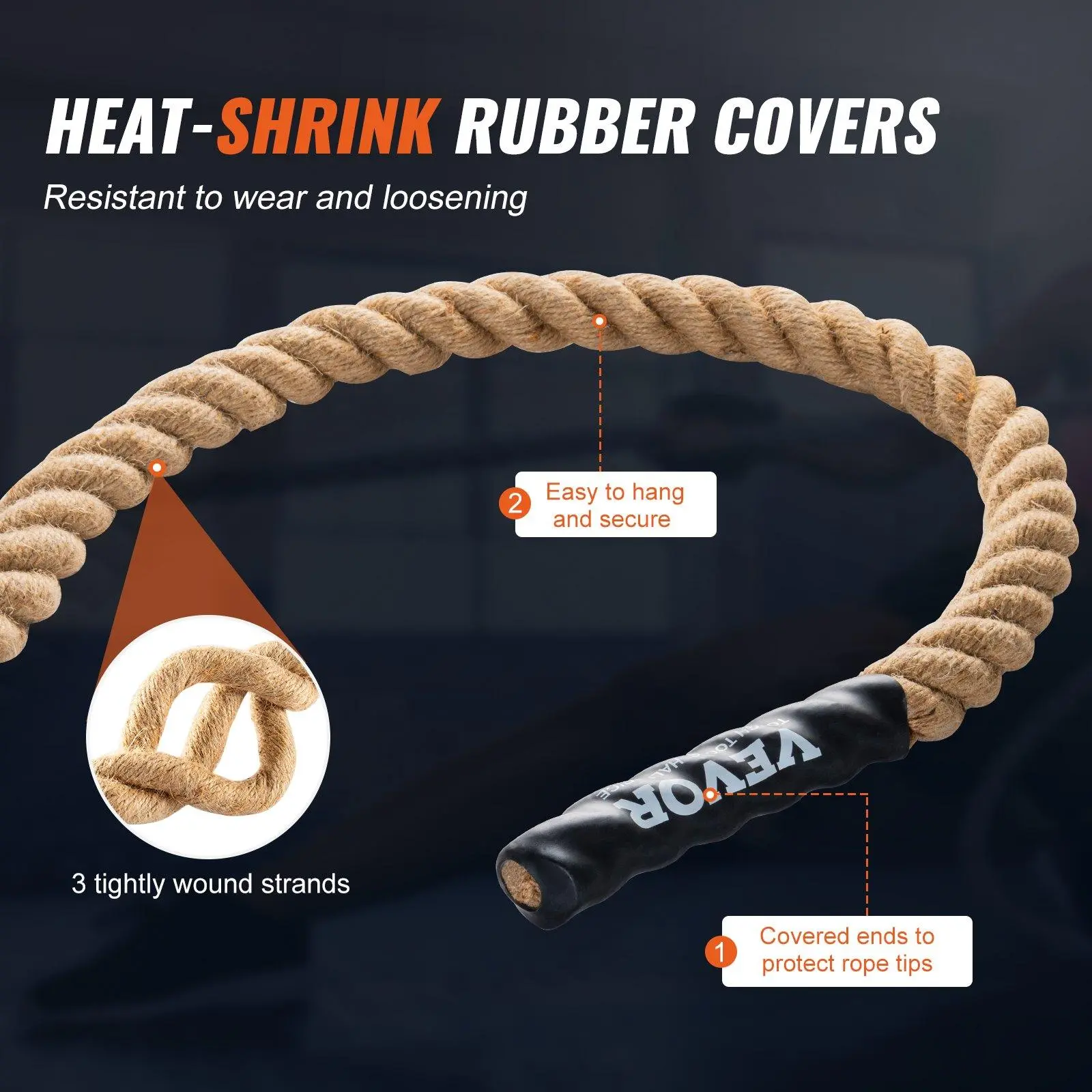 ·Abrasion Resistance and High Tensile Strength: Constructed from premium heavy-duty hemp rope material with a diameter up to 1.5 inch, this gym climbing rope offers strong tensile strength and abrasion resistance, capable of bearing significant weight and tension. It has undergone a 15,000N tensile strength test and supports a maximum weight of 500 pounds. It's recommended for indoor use in dry environments, avoiding moisture and water contact.