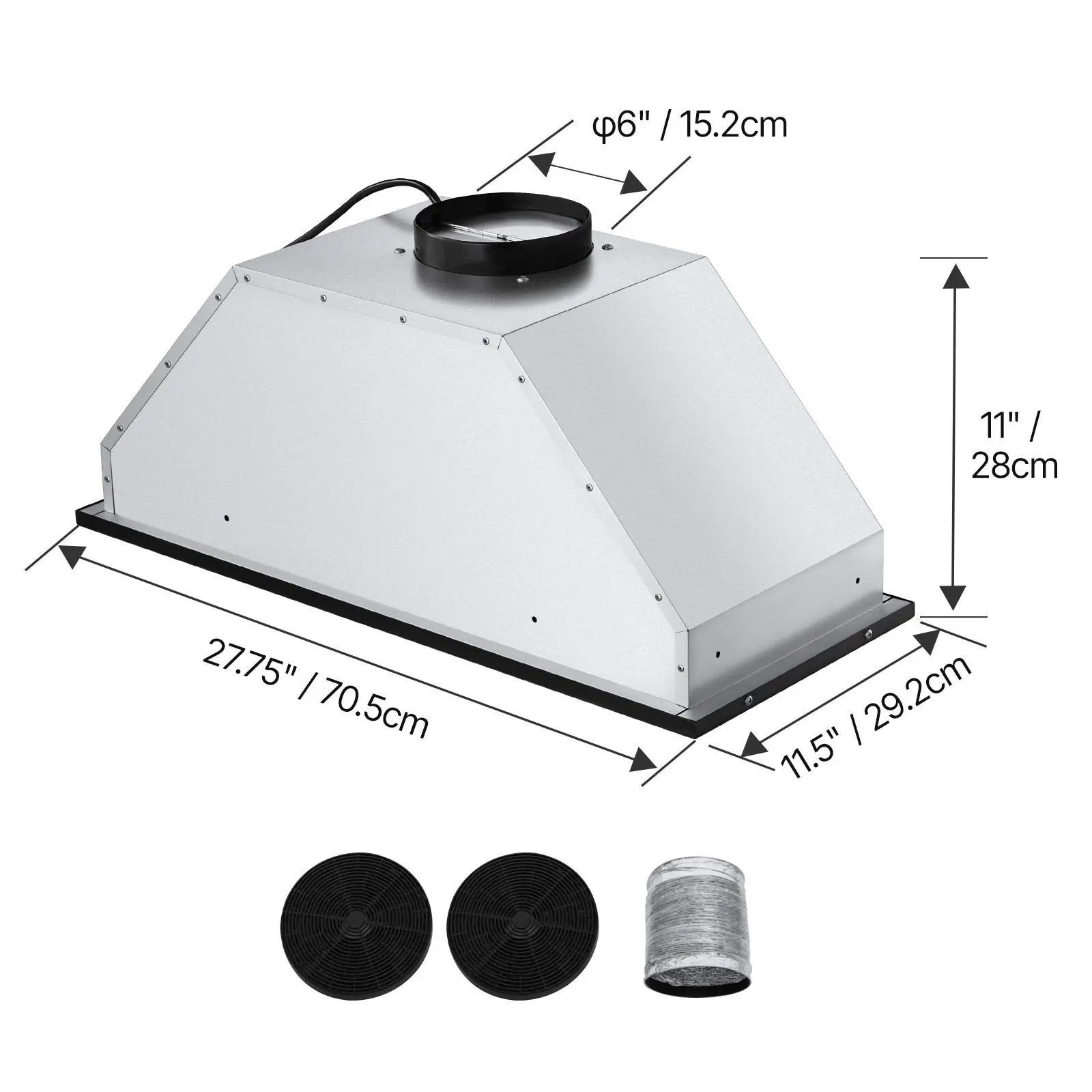 VEVOR Range Hood Insert,  30 Inch Built-in Kitchen Vent Hood, 800CFM  Steel Stove Hood, with Gesture & Touch Control, LED Light, Baffle Filters, 4-Speed Exhaust Fan, Ducted/Ductless Convertible