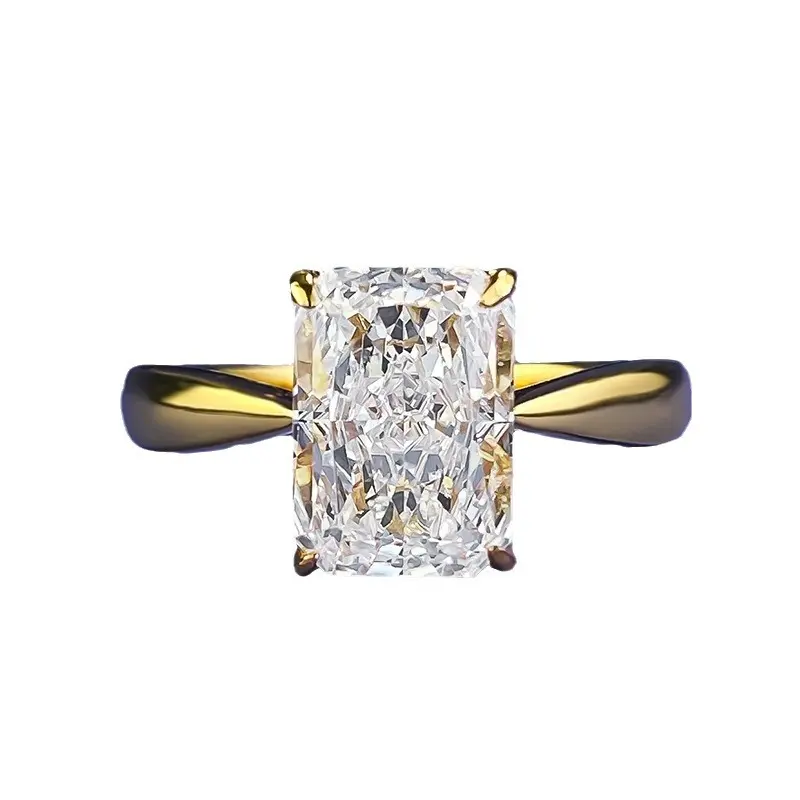 S925 Sterling Silver Ice Flower cut rectangular ring 7*10 8A cubic zirconia ring fashion jewelry accessory woman Girl promise ring springtok-353(50%)