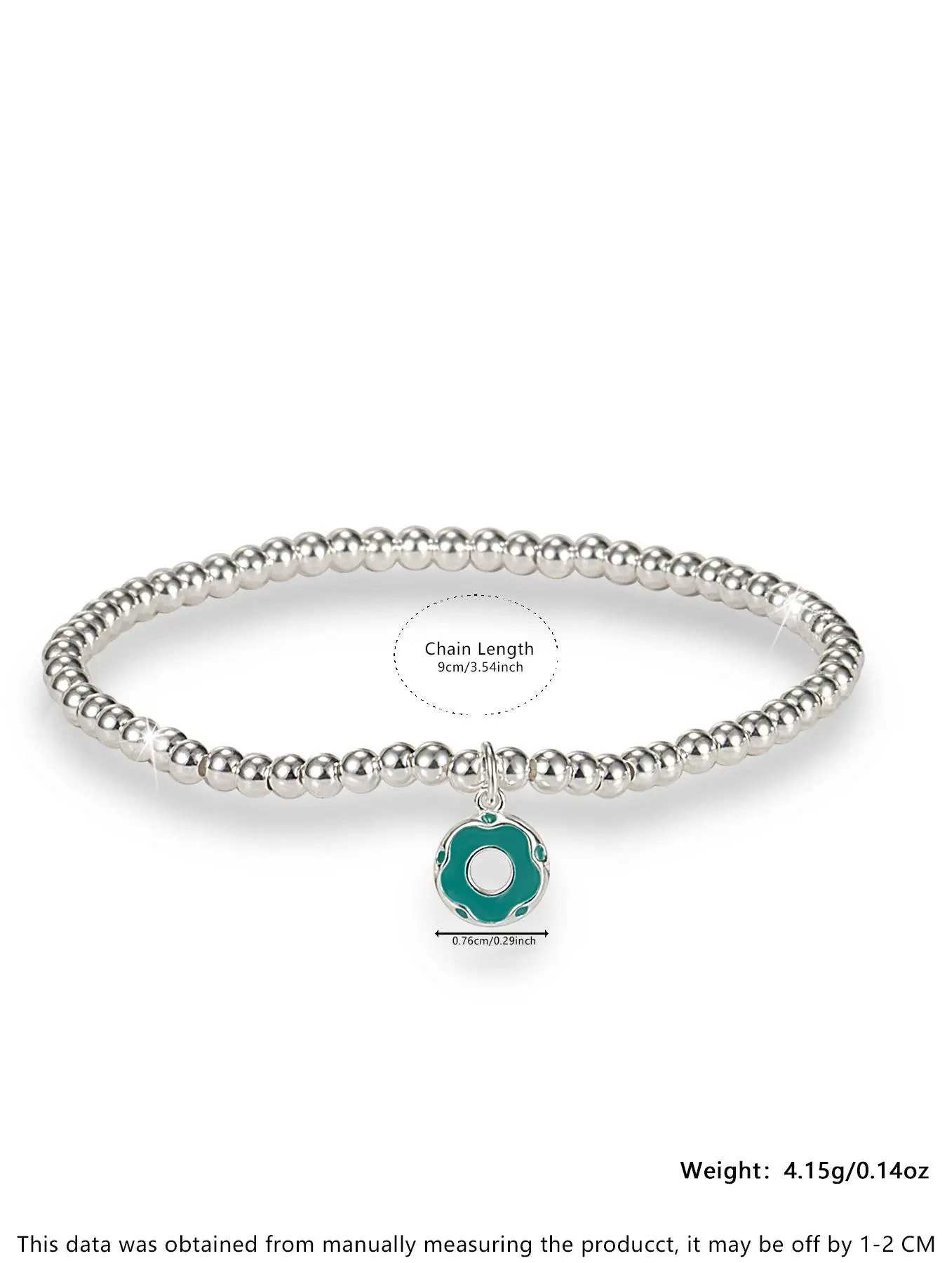 S925 Sterling Silver Cute Donut Design Beaded Bracelet with Pendant, Fashionable Jewelry for Women & Girls, Trendy All-match & Exquisite Jewelry for Birthday Gift