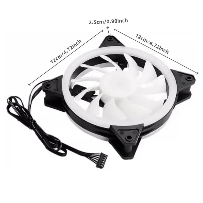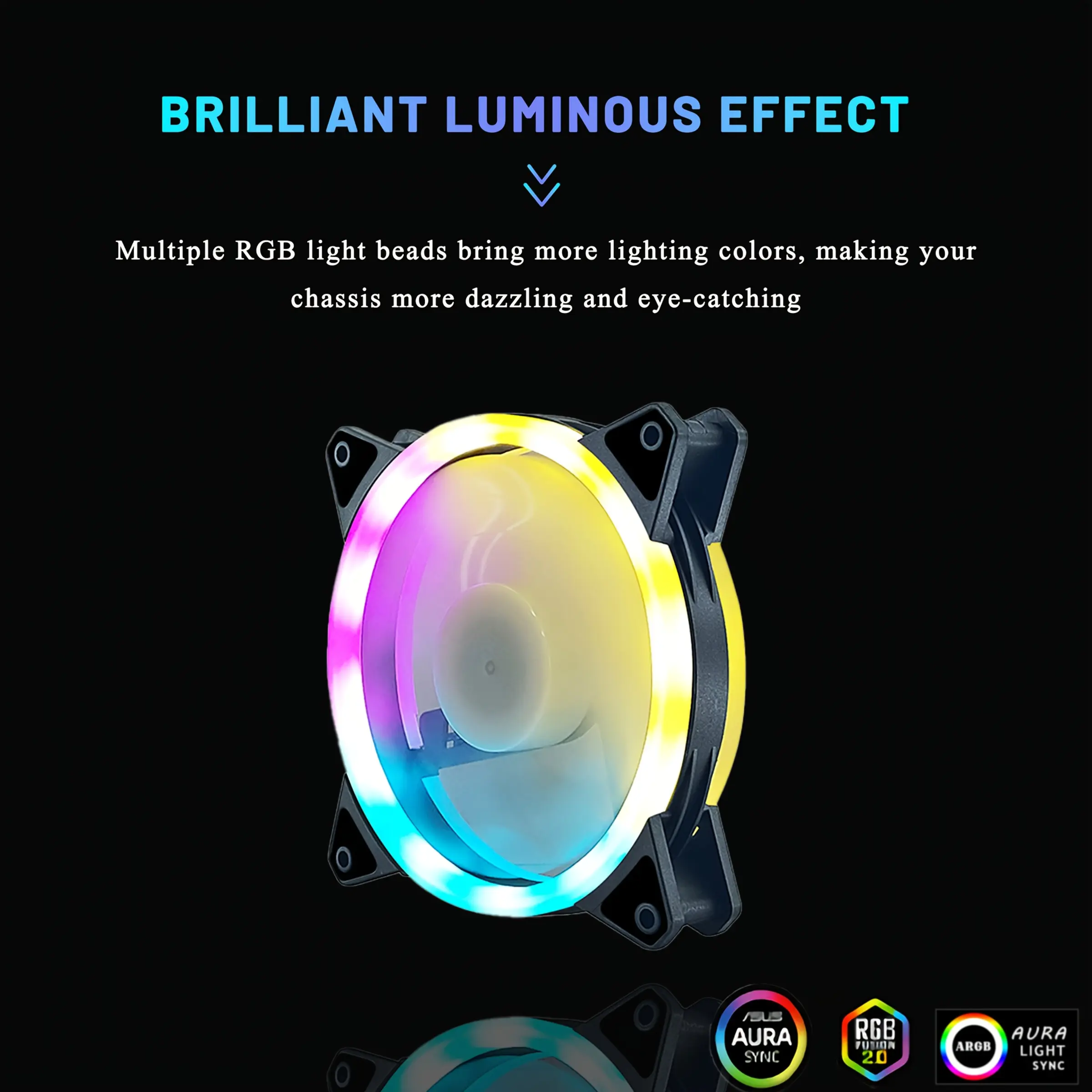 AEITTO PC Case Cooling Fan Light Synchronization RGB Case Fan 4.72 inch Silent Powerful Cooling Low Noise Cooling Desktop Computer Cooling Fan, 6-pin Interface Fan - Suitable for Desktop Tower Cooling