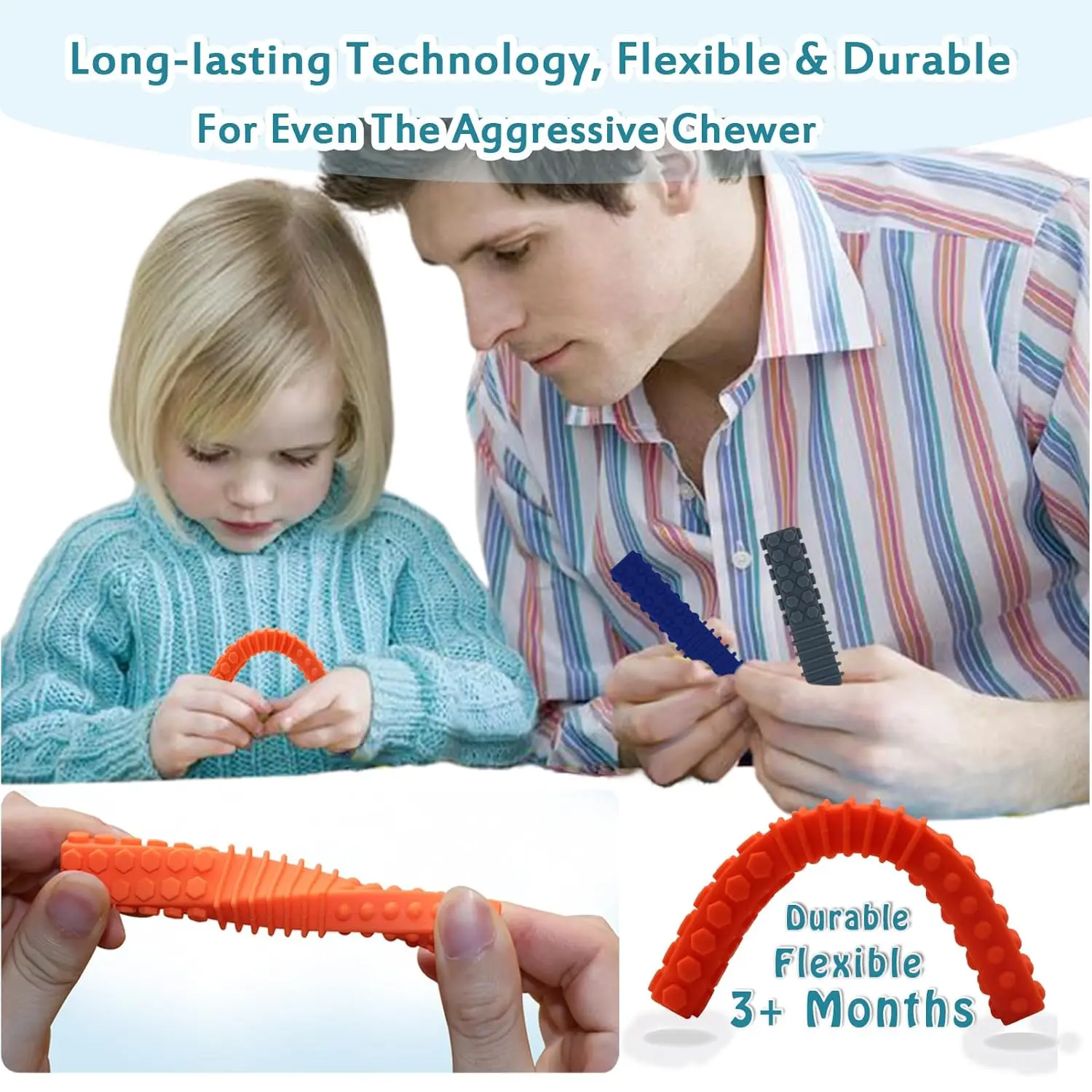 MULTIPLE TEXTURES: The tools sensory toys with 3 texture met different sensory needs, so as for sensory provide extra input ,and our chewies for sensory helps reduce , sore gums and stay focus, biting for , thumb sucking stop for etc.