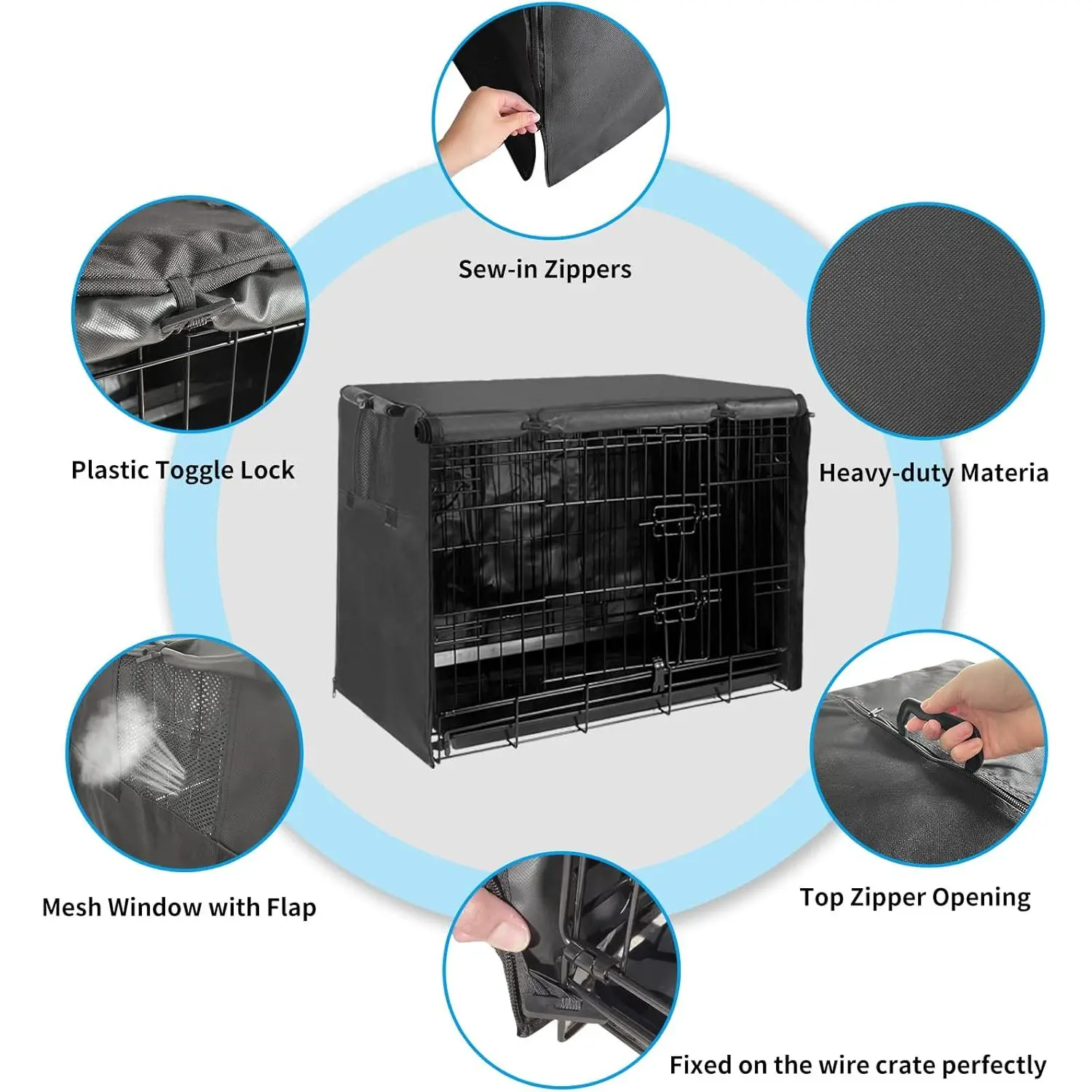 [Dimension]: 48 inch crate cover 48L x30W x33H inch, universal fits for brand 48 inch standard wire crate. Compatible with 1-door, 2-door, and 3-door wire crates. Please refer to the size illustration below or contact . The wire crate is not included.