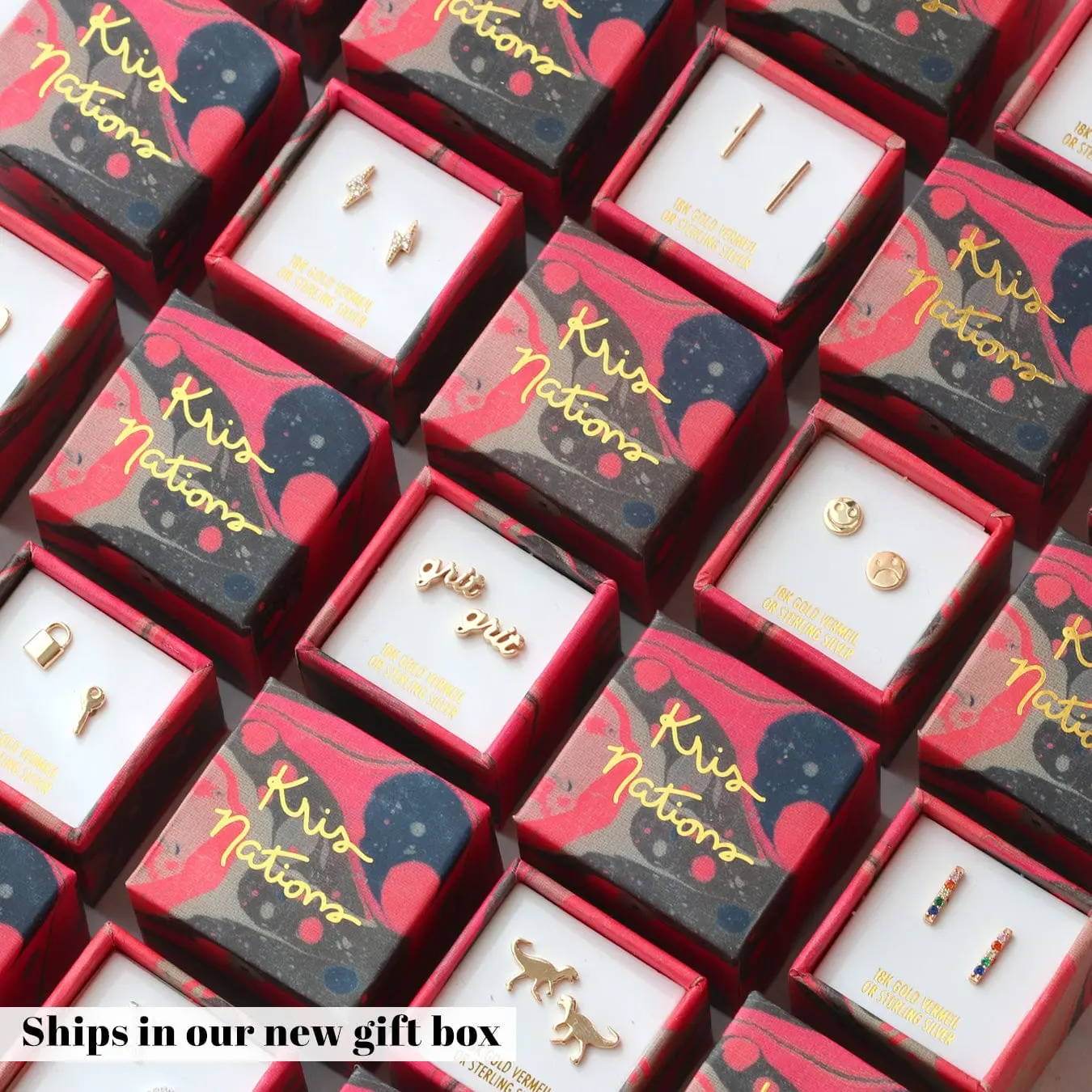 Measure approximately 0.25 inches. Available in sterling silver or gold vermeil (solid sterling silver with 18k gold plating)